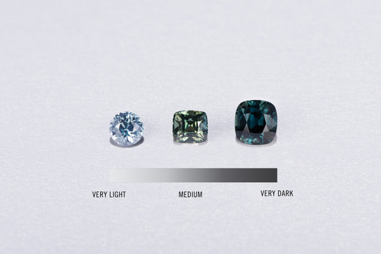 Colour generally has the greatest influence on the value of a sapphire. The three components to consider in regards to colour are: hue; saturation; and tone. The hue is the basic impression of the colour (i.e green or blue), the saturation is how vivid or intense the hue is, and the tone is the relative lightness or darkness of the hue. The combination of these three components determine the value of the stone with respect to colour.
