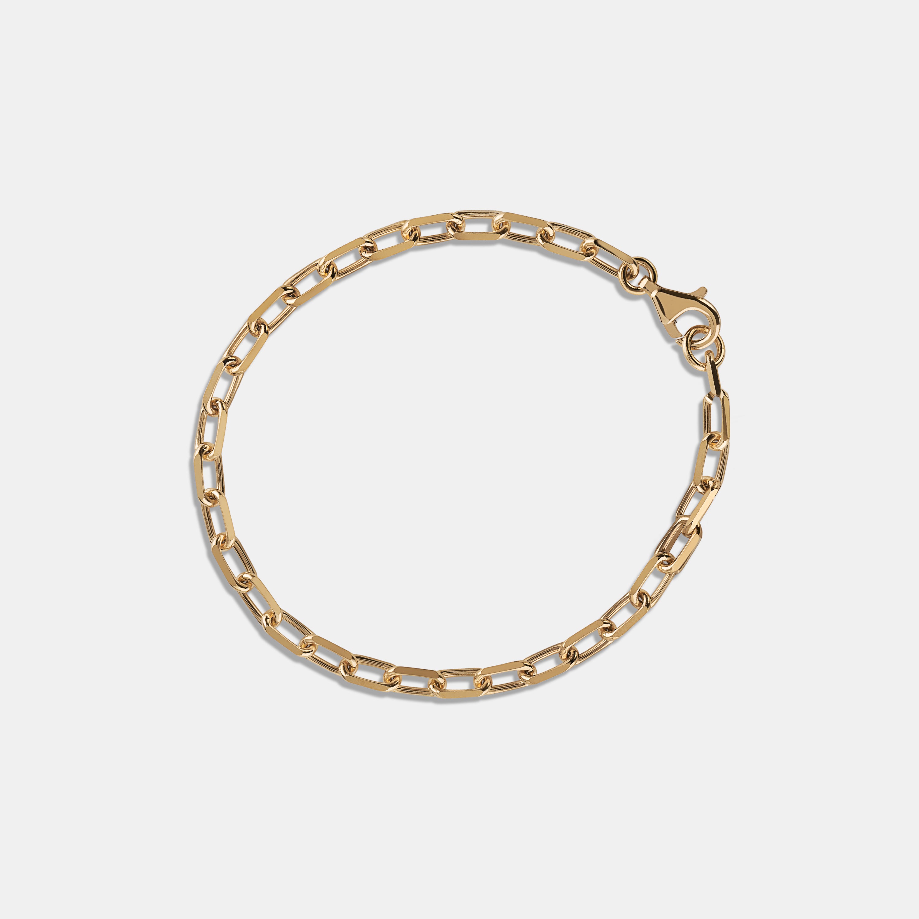 A luxurious solid 18 Karat Yellow Gold bracelet, crafted with a refined 3.74mm width and extending to a versatile 18cm length. Featuring a secure lobster clasp for ease of wear, this elegant piece is meticulously made in Italy using recycled Australian Gold, combining timeless craftsmanship with sustainable luxury.