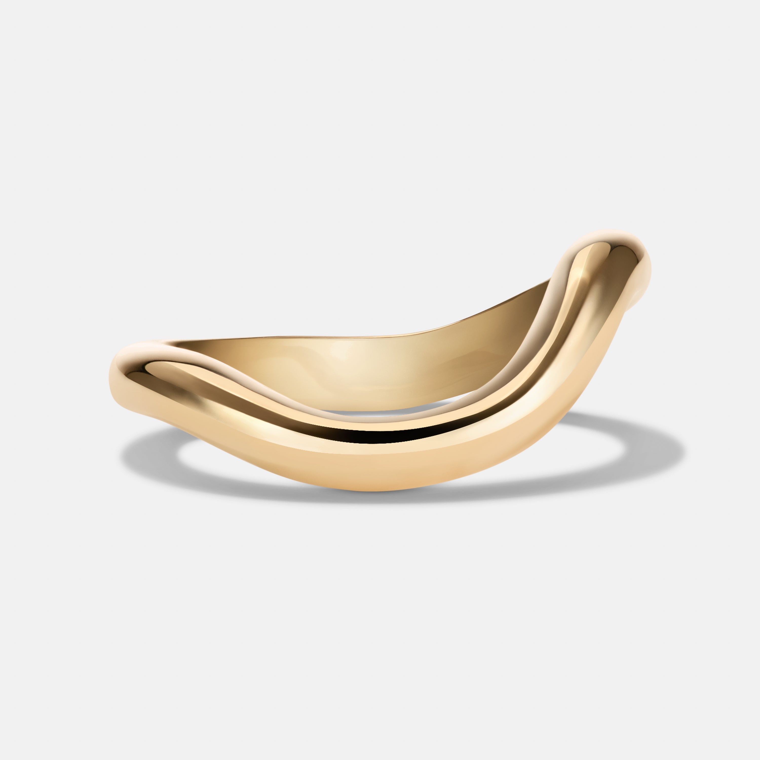 Our innovative ATHENA design now includes a stunning wedding band that beautifully echoes its fluid contours. The ATHENA BAND is crafted to nestle at the base of the engagement ring, its elegant curve mirroring the grandeur of mountainous landscapes, and embracing the lower outline of the design.