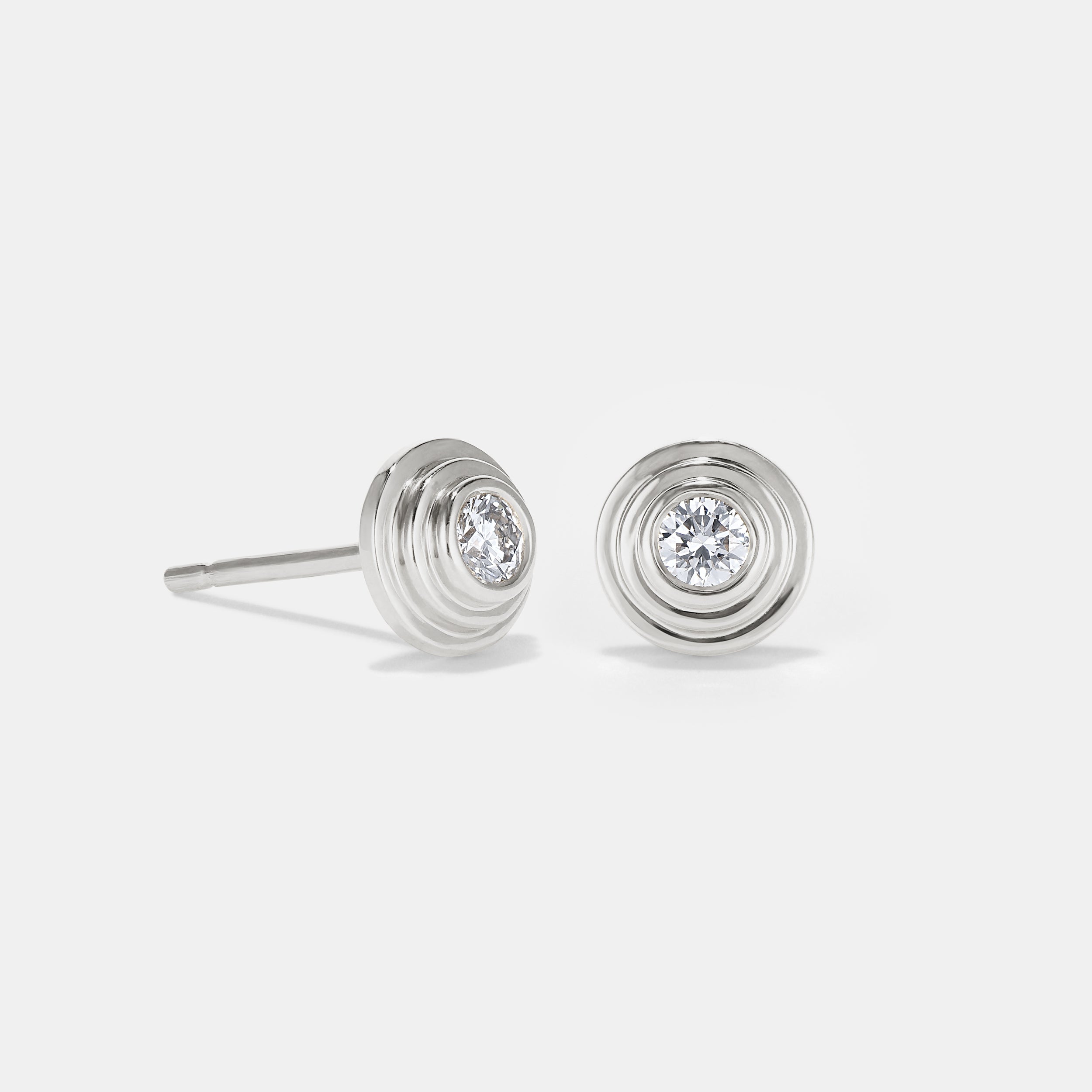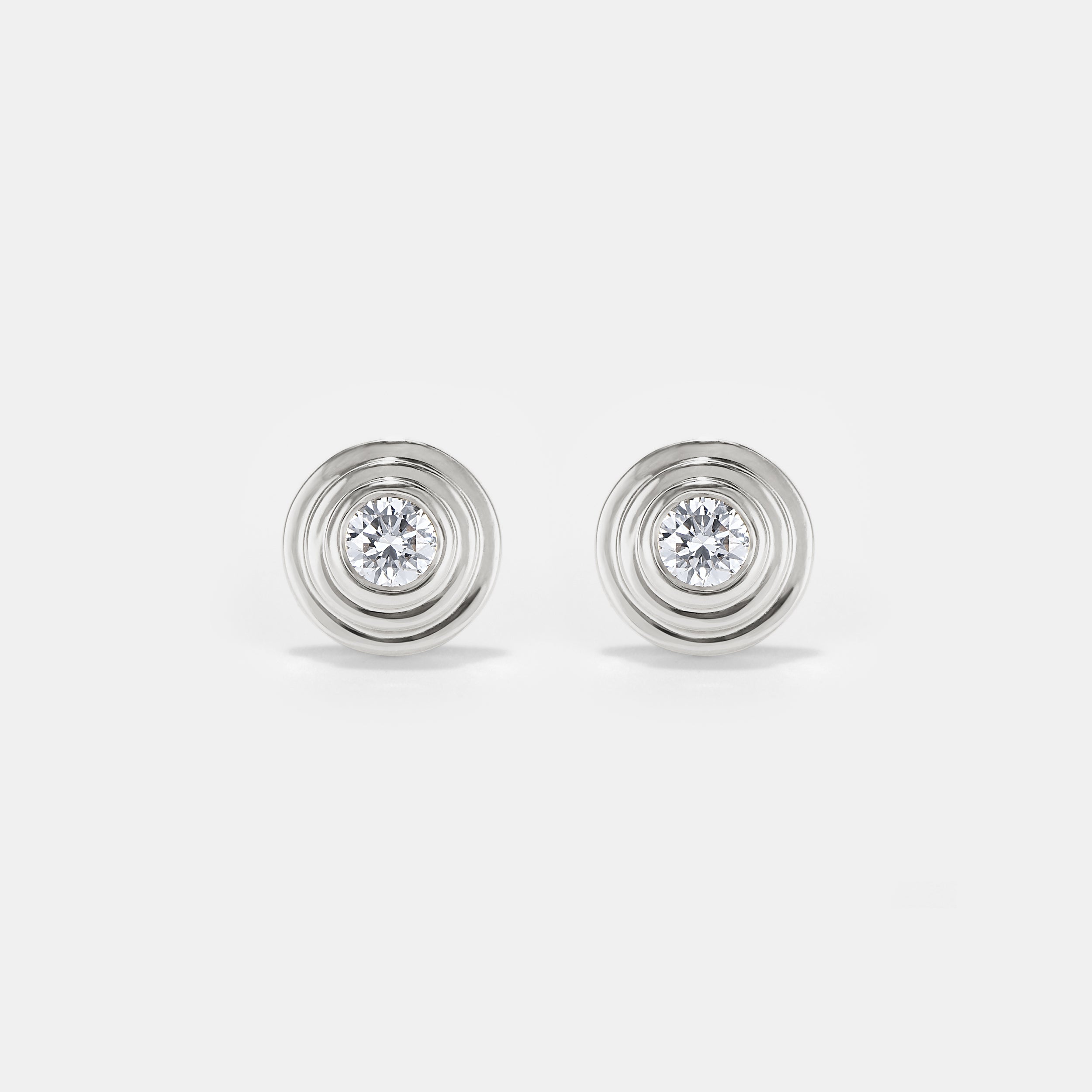 Expertly crafted from lustrous 18 karat white gold, the CONTOURS DIAMOND STUDS feature a stunning bezel-set round white diamond in each earring, held firmly by secure butterfly backings. Elevate your elegance with this exquisite pair, sold together for a complete look.