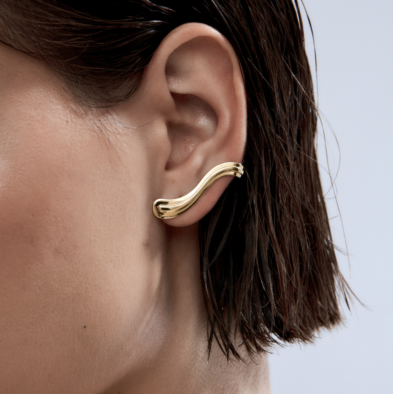 The CONTOURS EAR CLIMBER crafted in exquisite 9 karat or 18 karat yellow gold is not a mere accessory. It is a statement piece that follows the natural contour of the ear, creating a harmonious connection with the wearer. Its form is a testament to the beauty of simplicity and the elegance of natural lines.