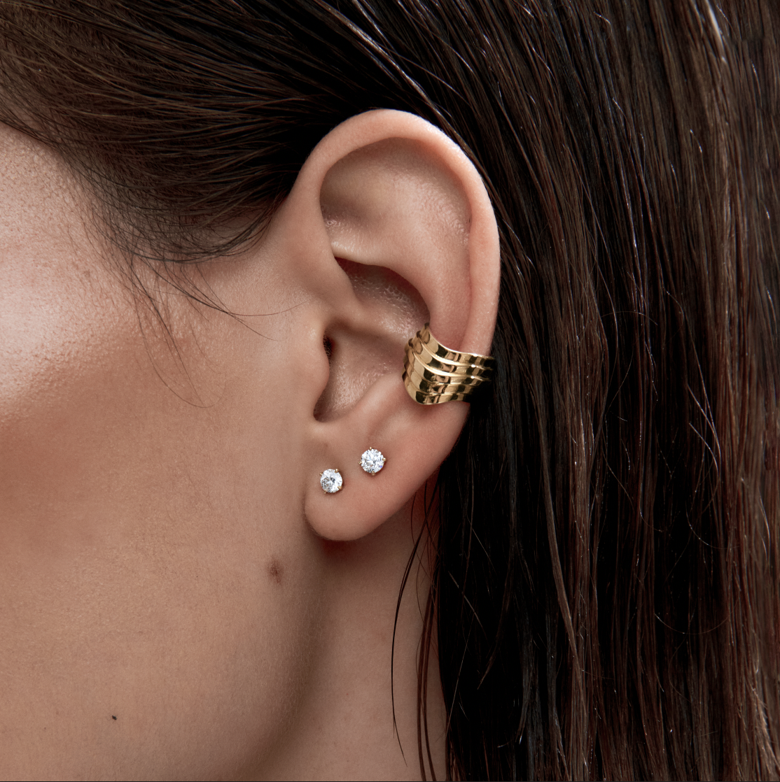 The CONTOURS EAR CUFF is meticulously designed to wrap around the form of the ear, conforming to its shape, and adding an element of elegance and sophistication. Its distinctive design creates depth and dimension through its undulating topography. Please note: No piercing required.