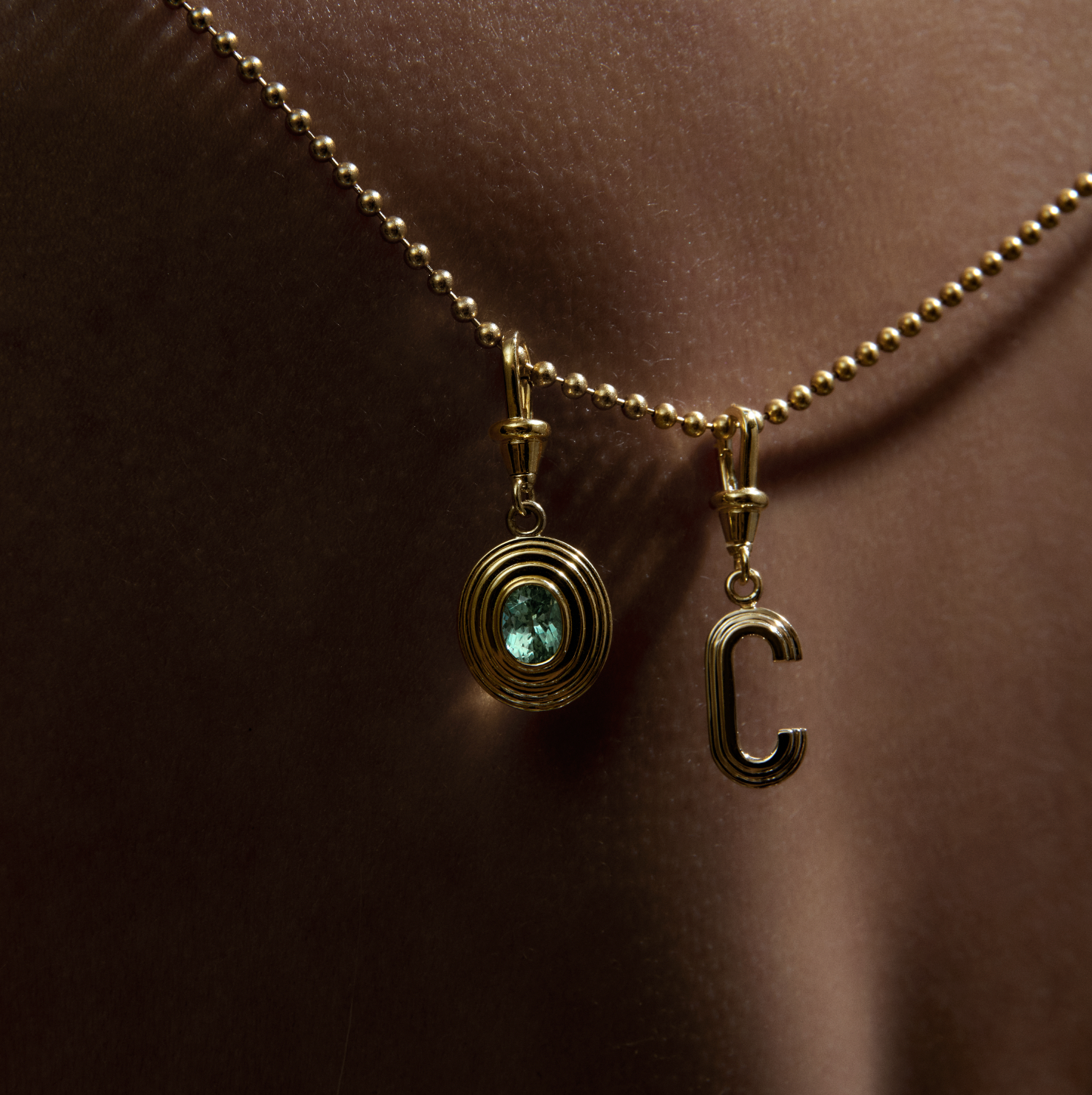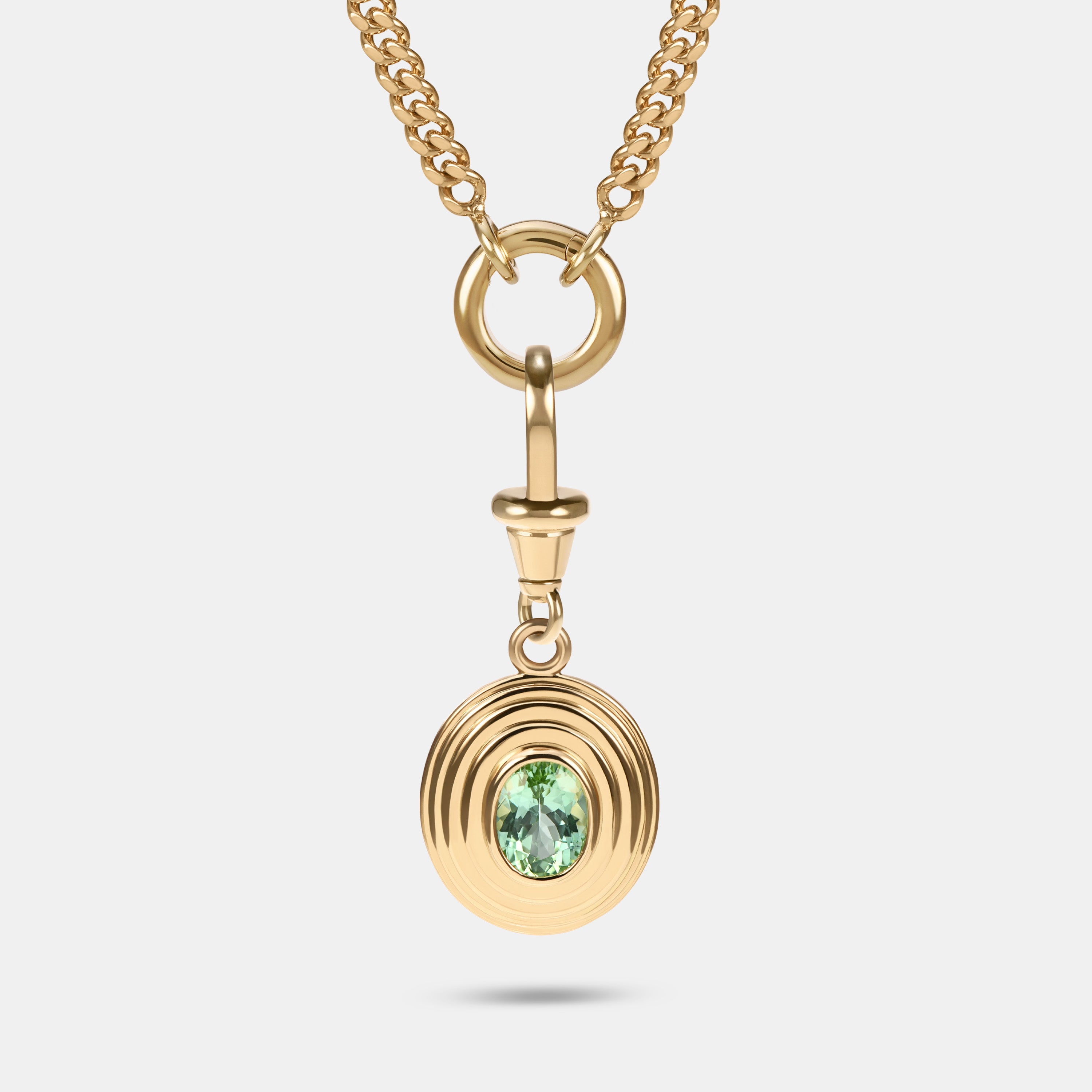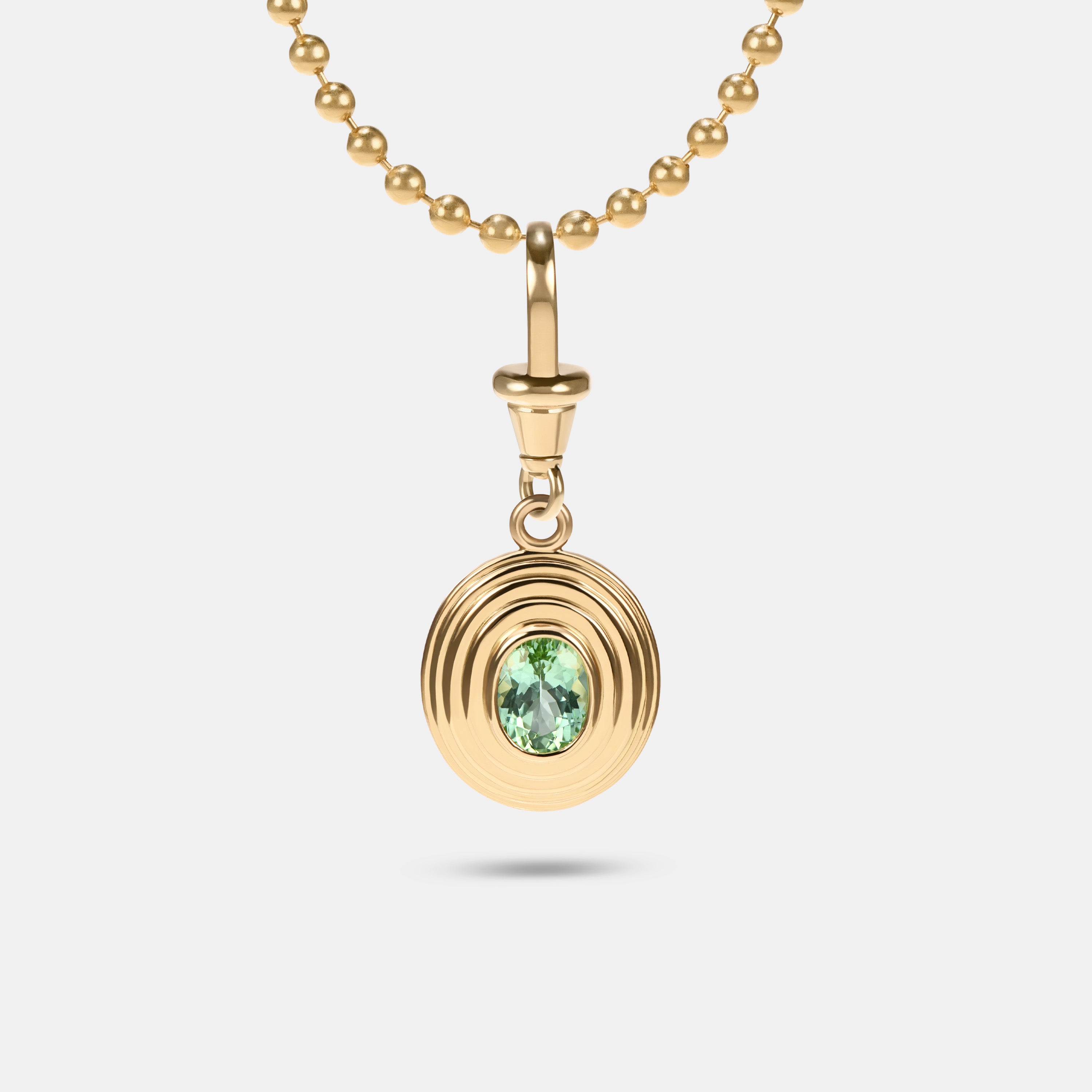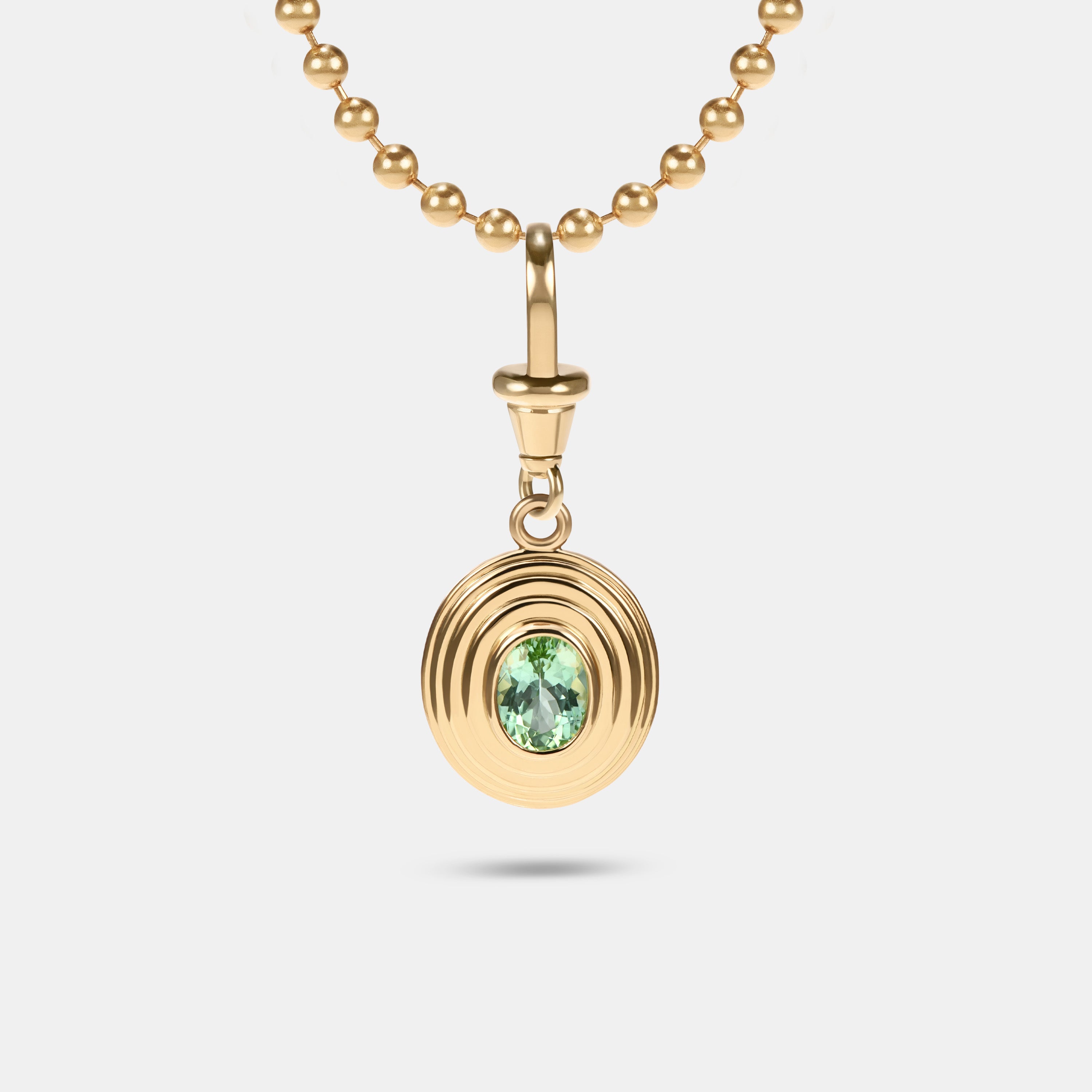 Our CONTOURS PENDANT, meticulously bezel-set with an exquisite 1.08ct Oval Cut Mint Green Tourmaline, represents not only a timeless piece of jewellery, but also a truly one-of-a-kind treasure that you won't find anywhere else. The ratio of graduating steps, which echo the form of the centre stone, create a curved profile from the side view, juxtaposing the idea of rigidity and fluidity. Making this pendant even more versatile is its ability to be attached to a chain necklace of your preference, allowing you to mix and match for different occasions.