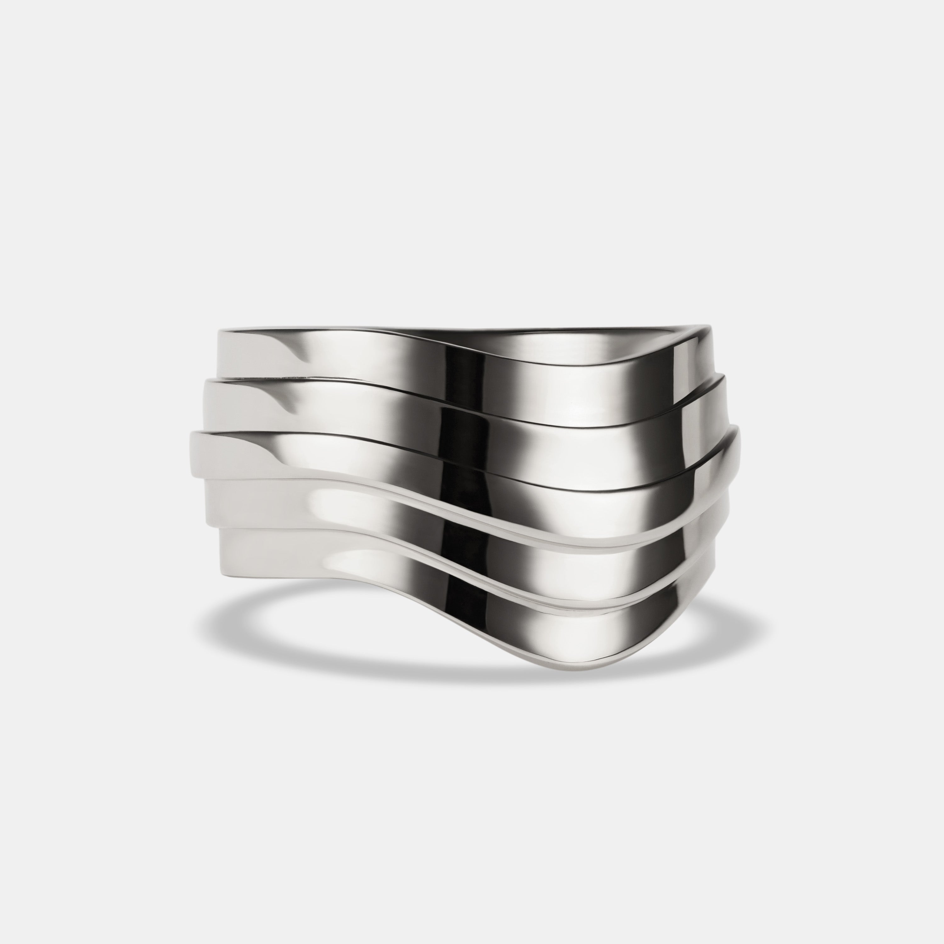 The CONTOURS RING, inspired by the steps and curves found in topographical maps, has been thoughtfully designed with great attention to detail to seamlessly conform to the delicate and intricate lines of the hand’s anatomy. Crafted in 9 karat or 18 karat yellow gold, this considered design ensures not only an appealing aesthetic but also a comfortable fit.