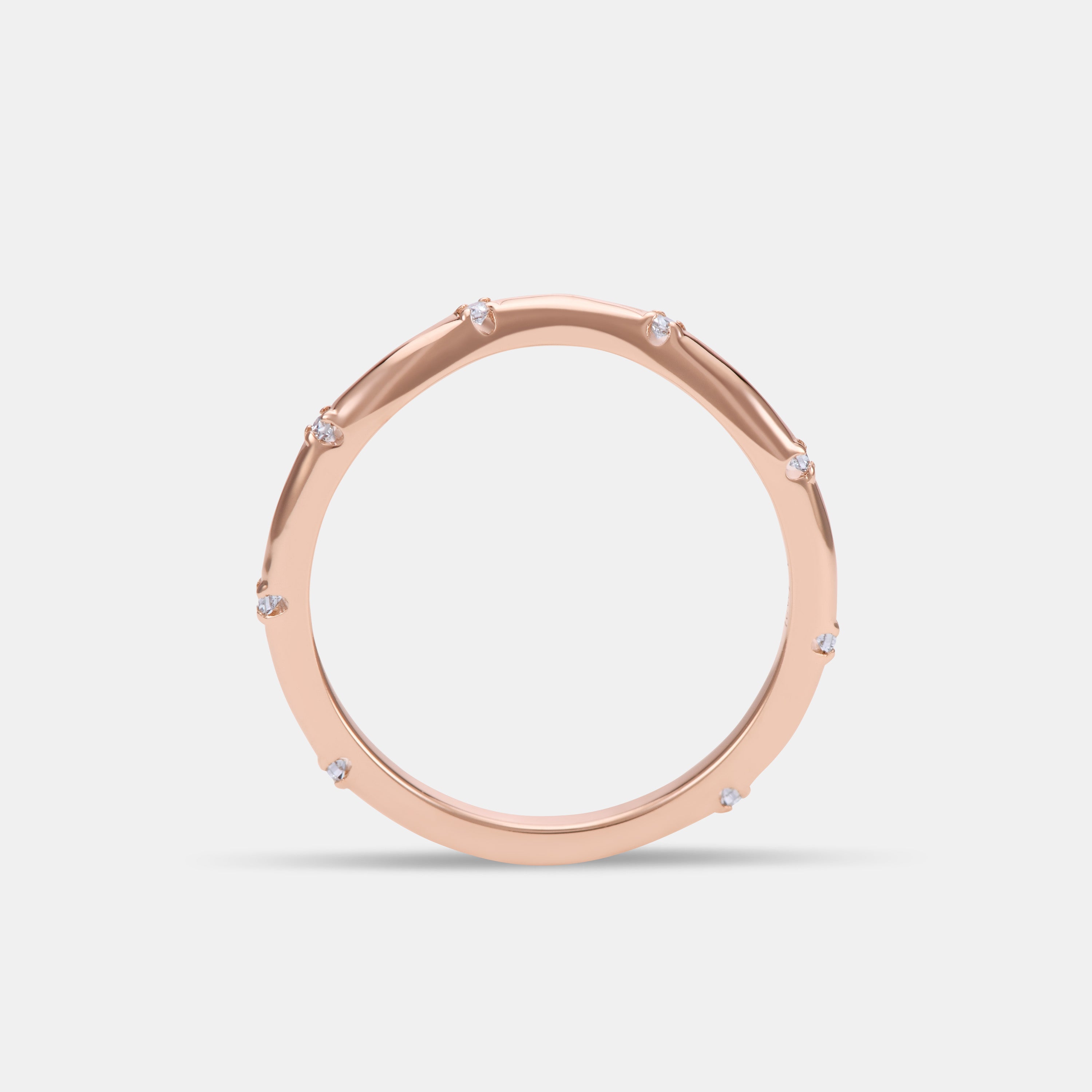 The CURVED LACEY wedding band handmade in 18 karat yellow gold, micro claw set with round white brilliant diamonds spaced evenly around the band. A simple yet elegant way to show your eternal love, perfect for your special day.