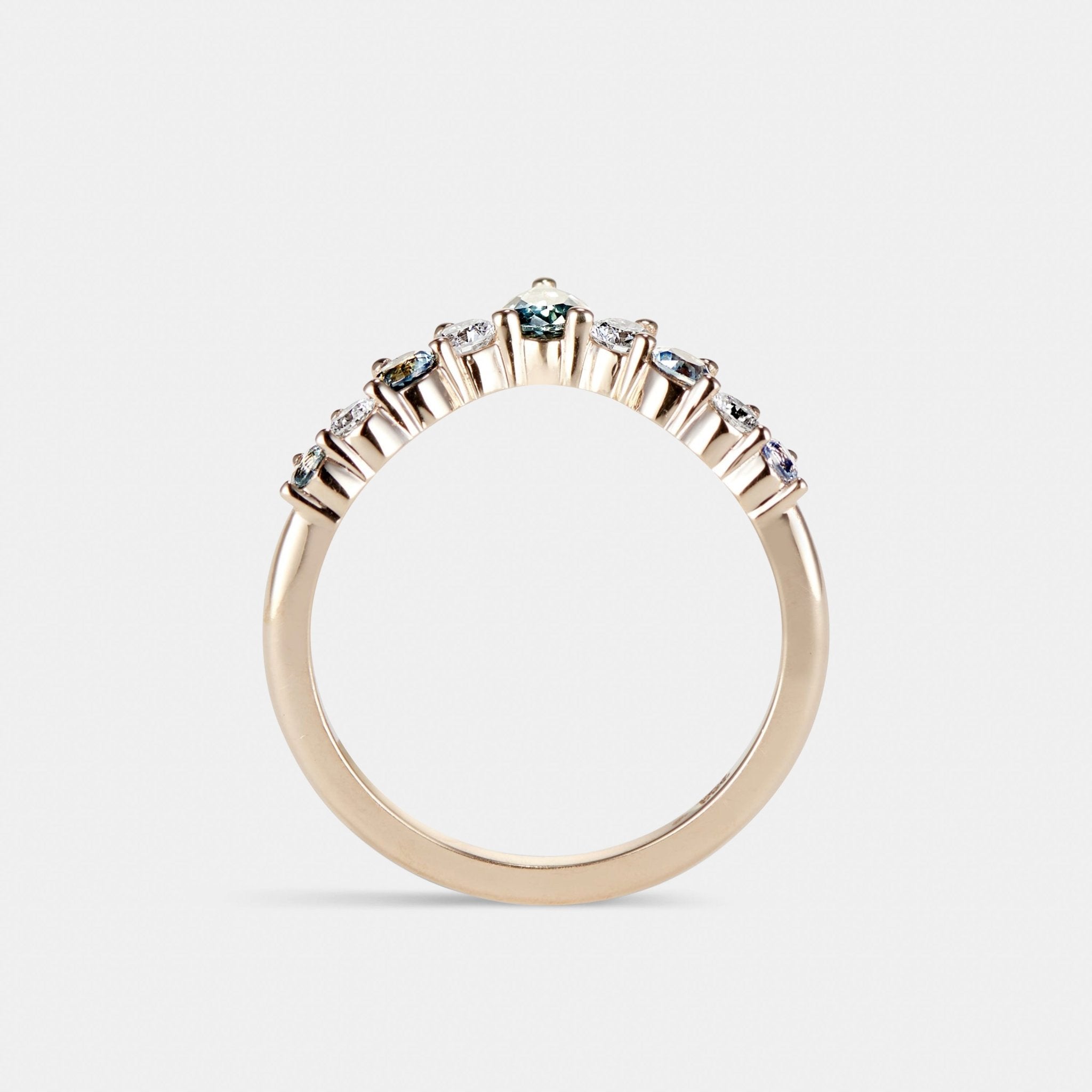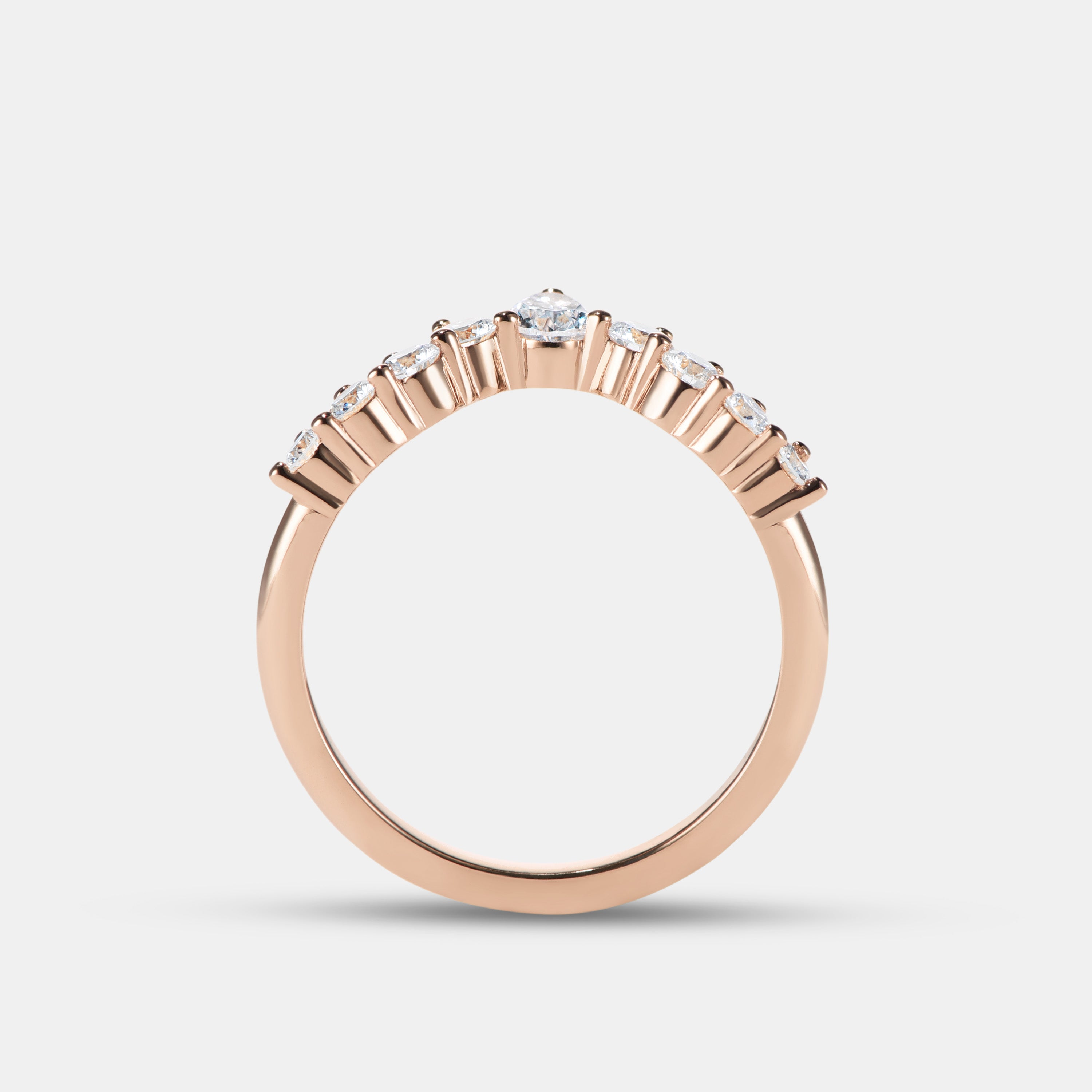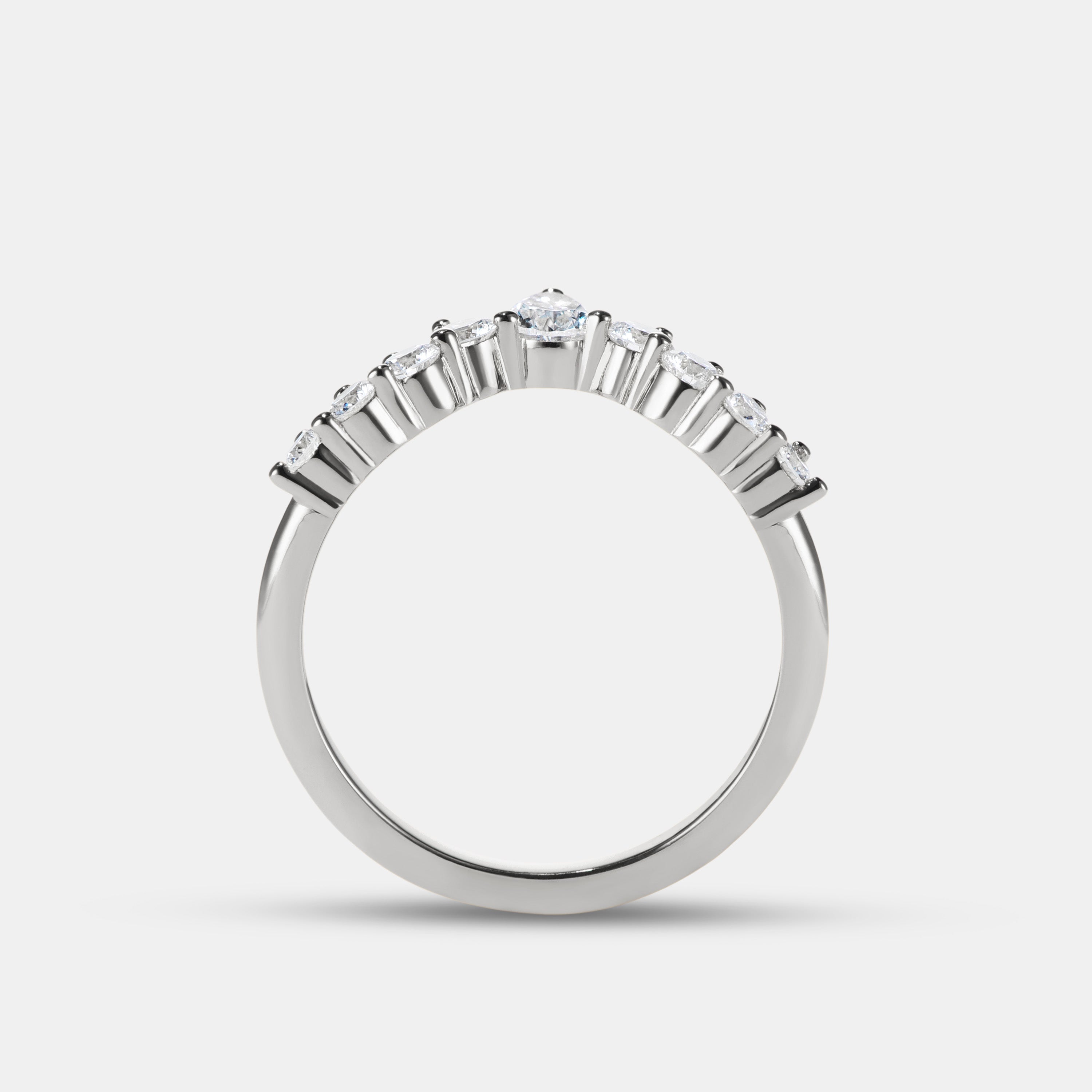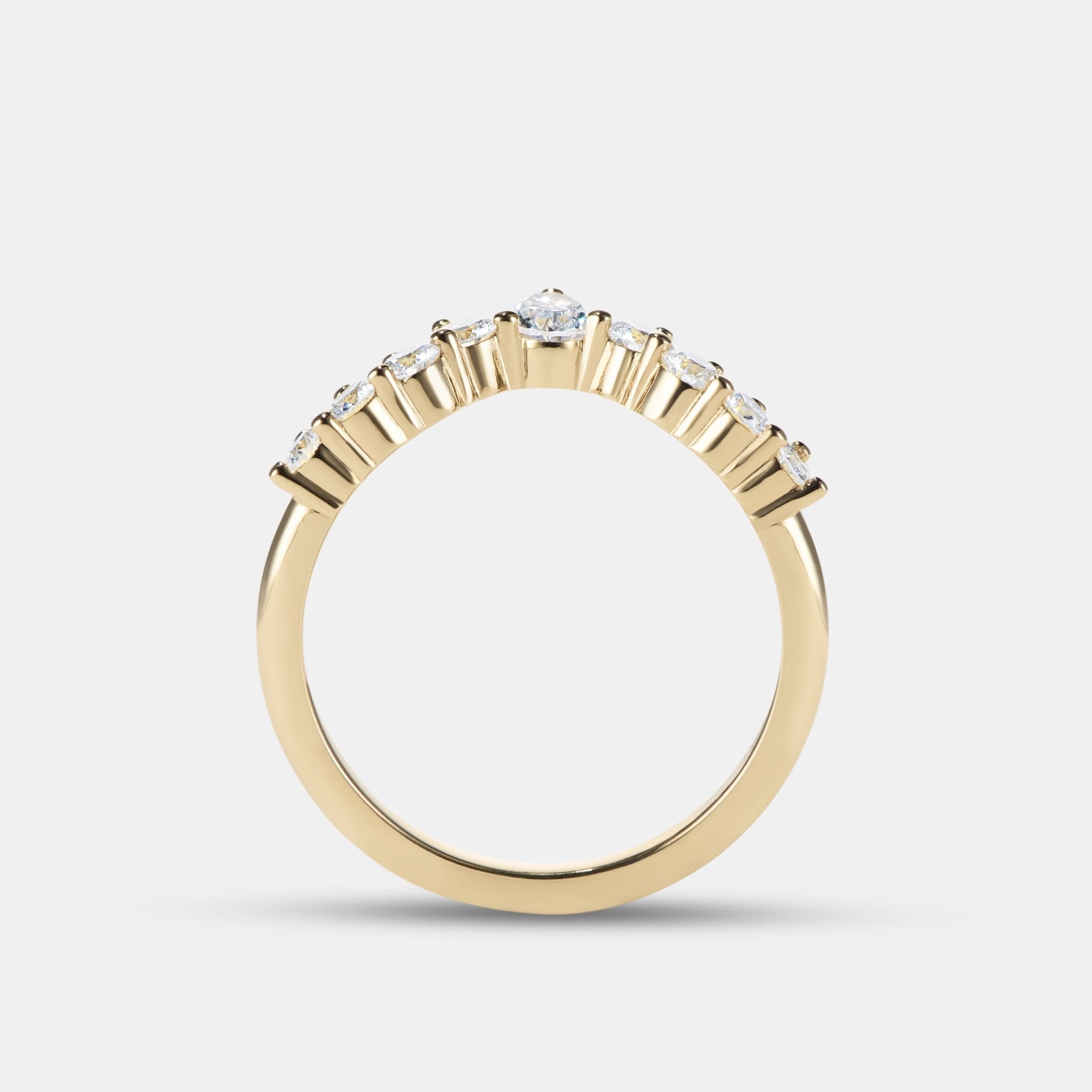 The FLORENCE wedding ring is the elegant crown to your three stone engagement ring. Its delicate shape and unique settings make it the perfect symbol of your commitment and enduring love. Crafted with precision and care, the FLORENCE wedding ring adds a touch of timeless luxury to your look.