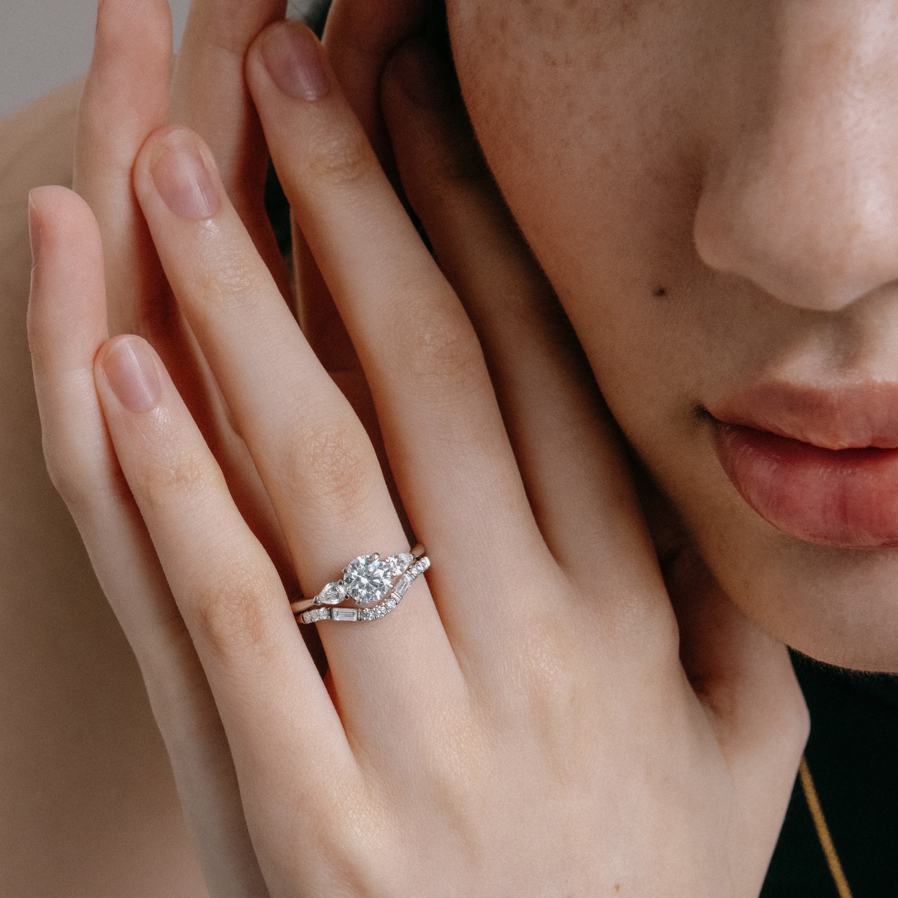 All our open and curved wedding bands are custom made to best fit your engagement ring.