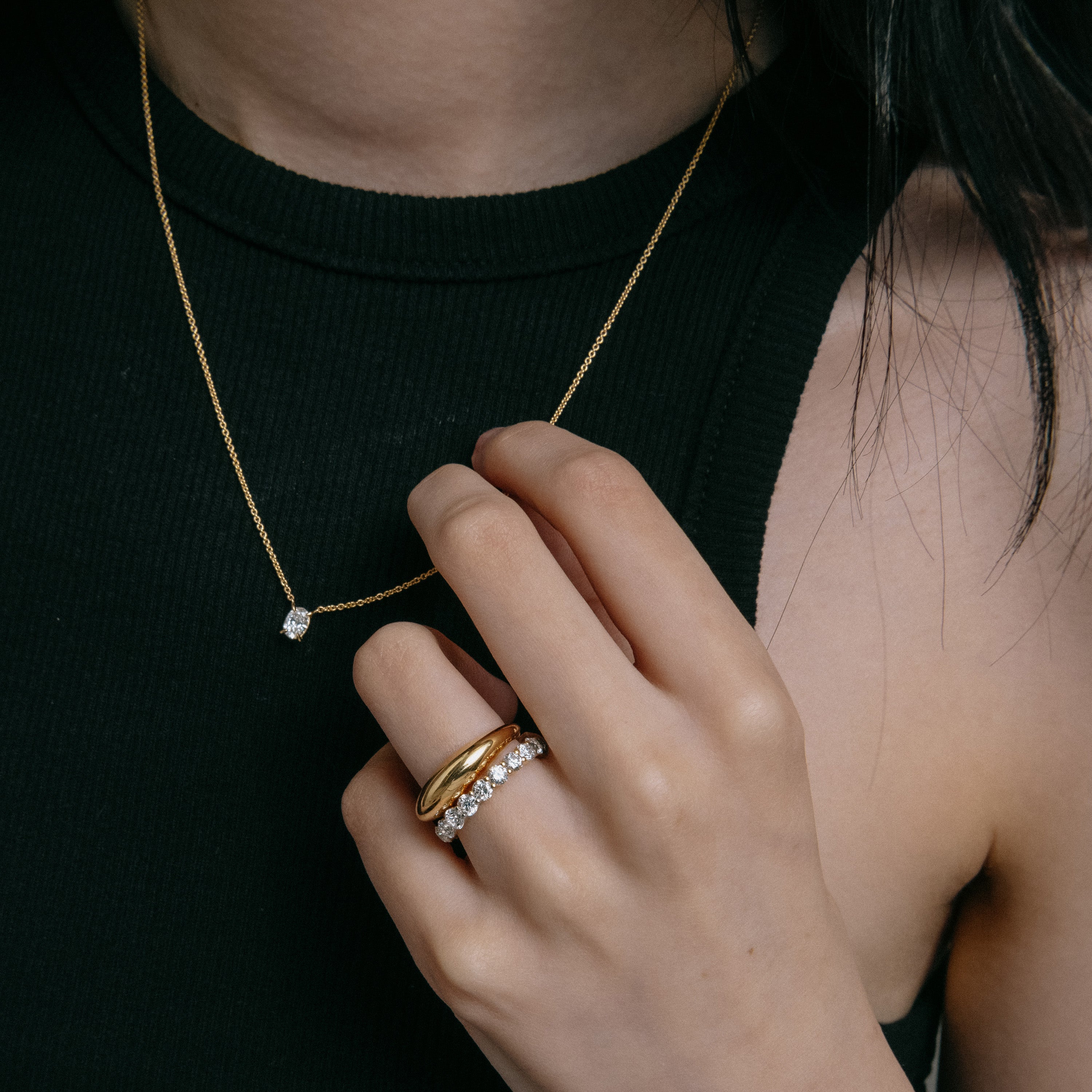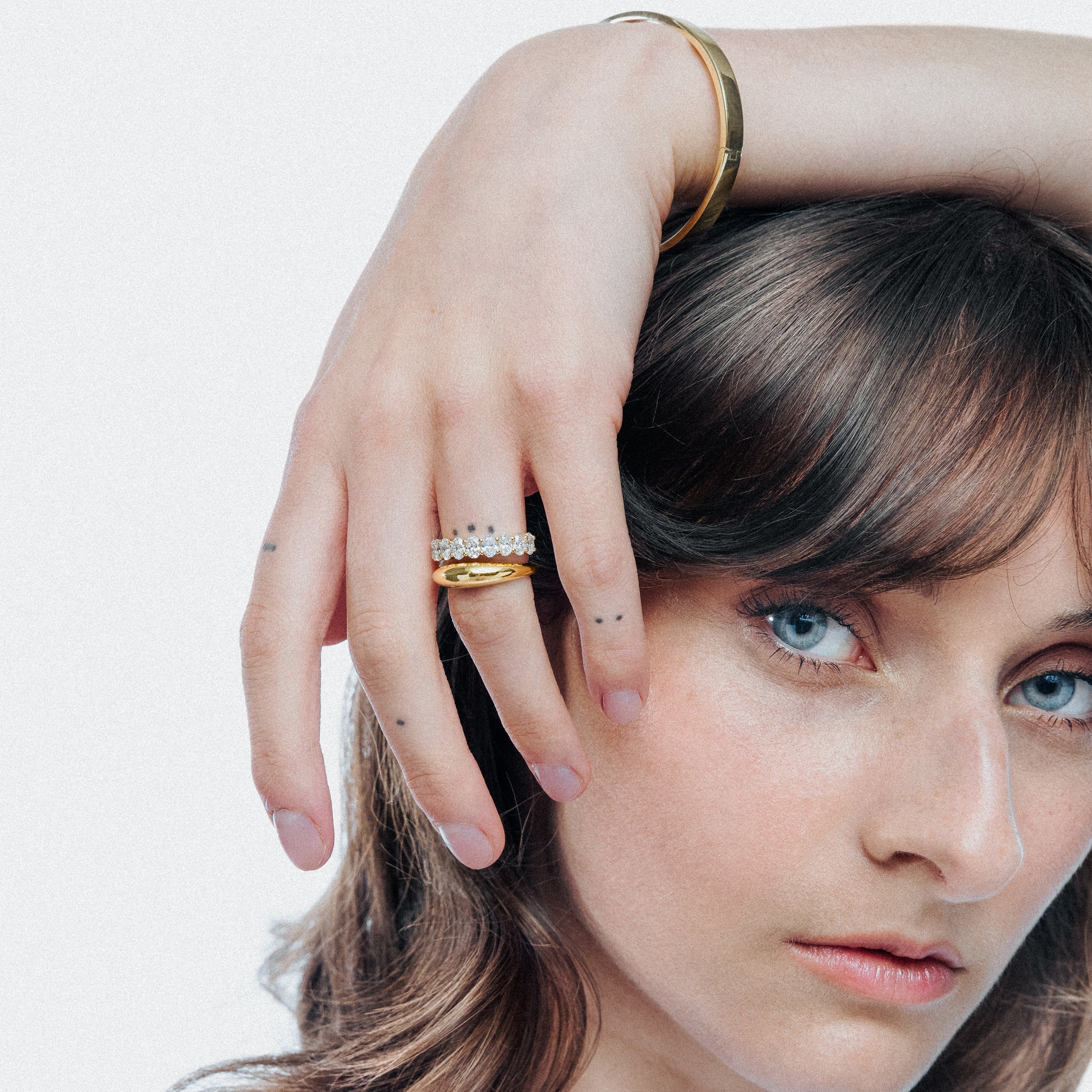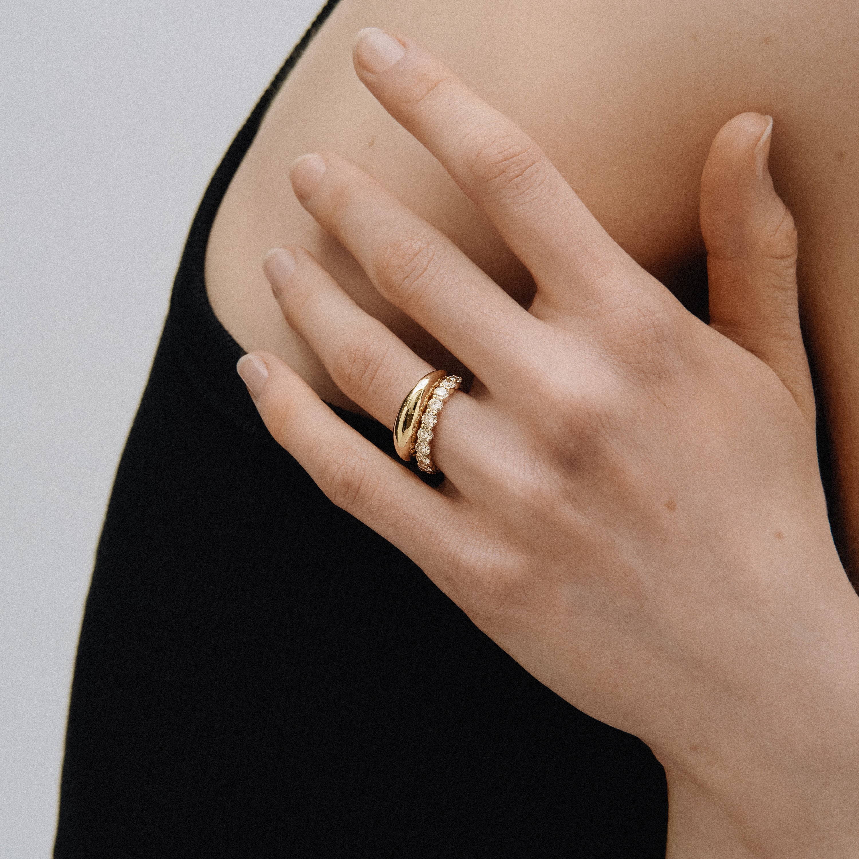 BOMBÉ rings are the epitome of modern glamour. The domed, highly polished silhouette of our NARROW BOMBÉ ring offers a sleek and modern interpretation of this classic style.