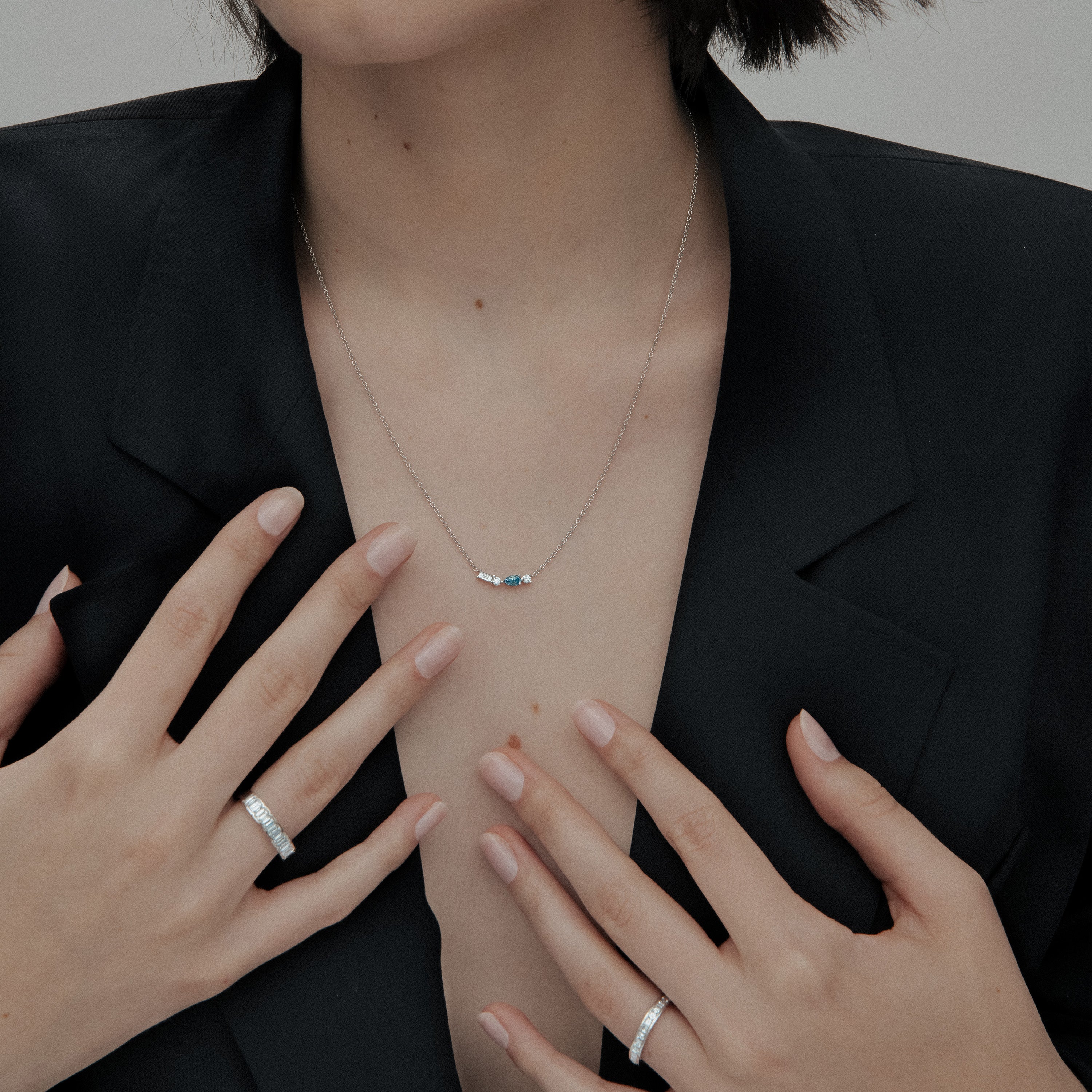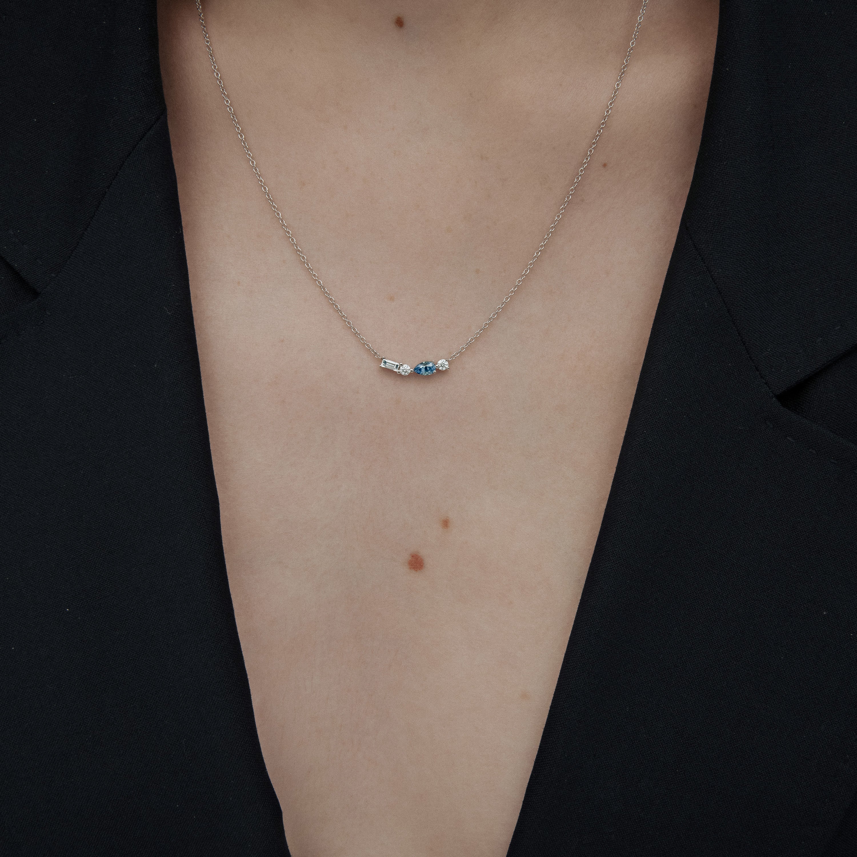 The PETITE COLOUR NECKLACE STYLE No. 2 is made in 18 karat white gold. This simple yet luxurious necklace is the perfect touch of subtle elegance for any wardrobe.