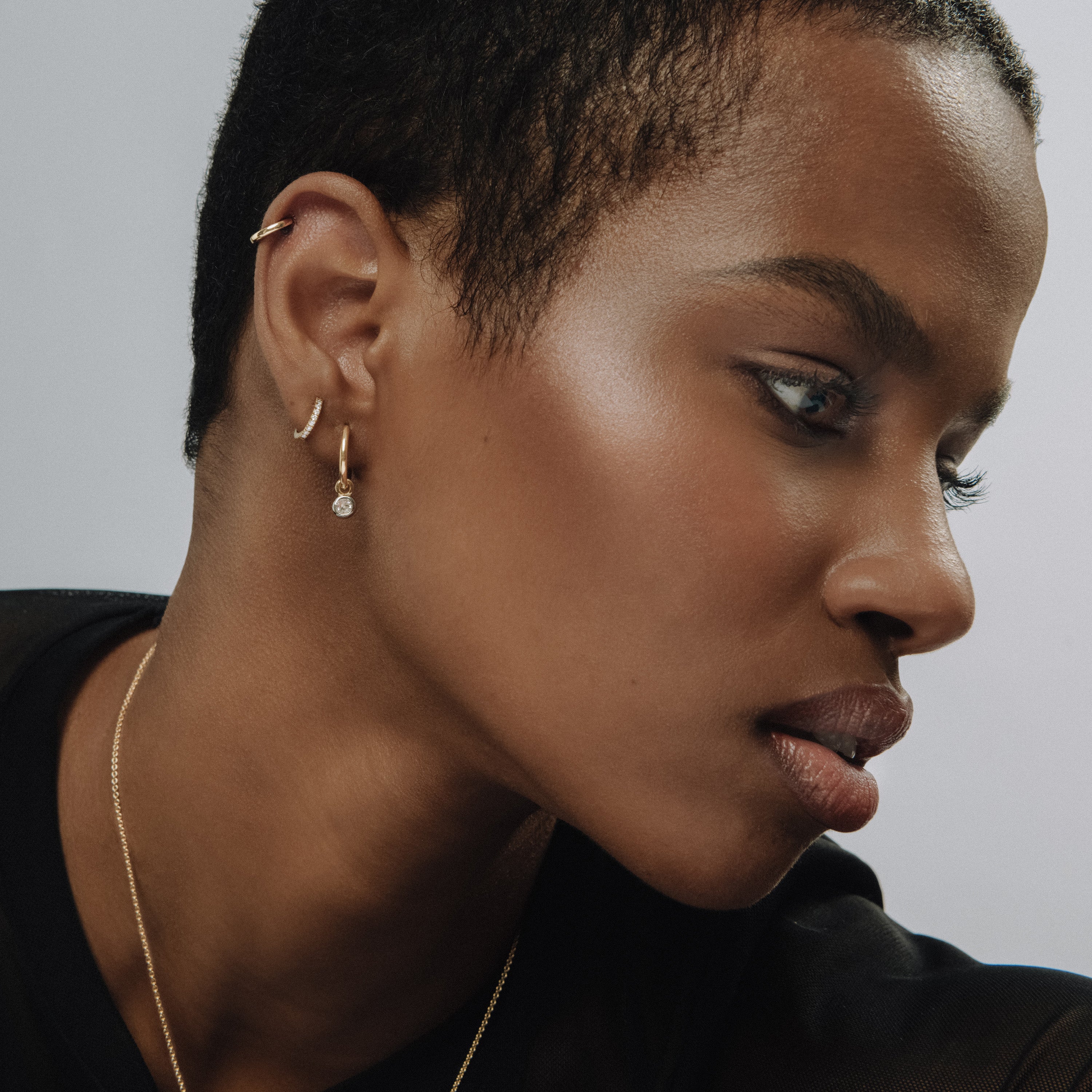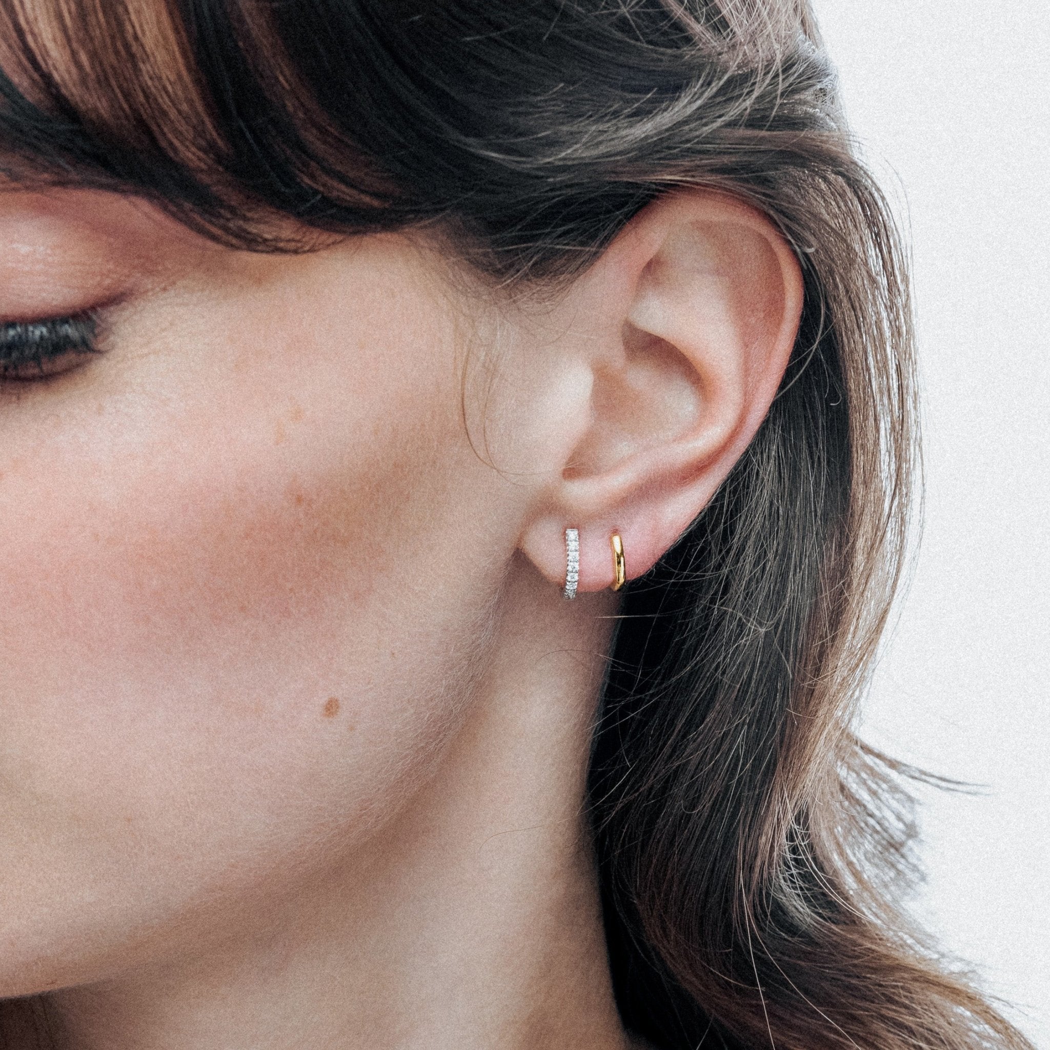 Due to the petite nature of these huggies (and depending on the individual thickness of different lobes) the MINI HUGGIES are generally better suited to styling in the smaller areas of your ears.