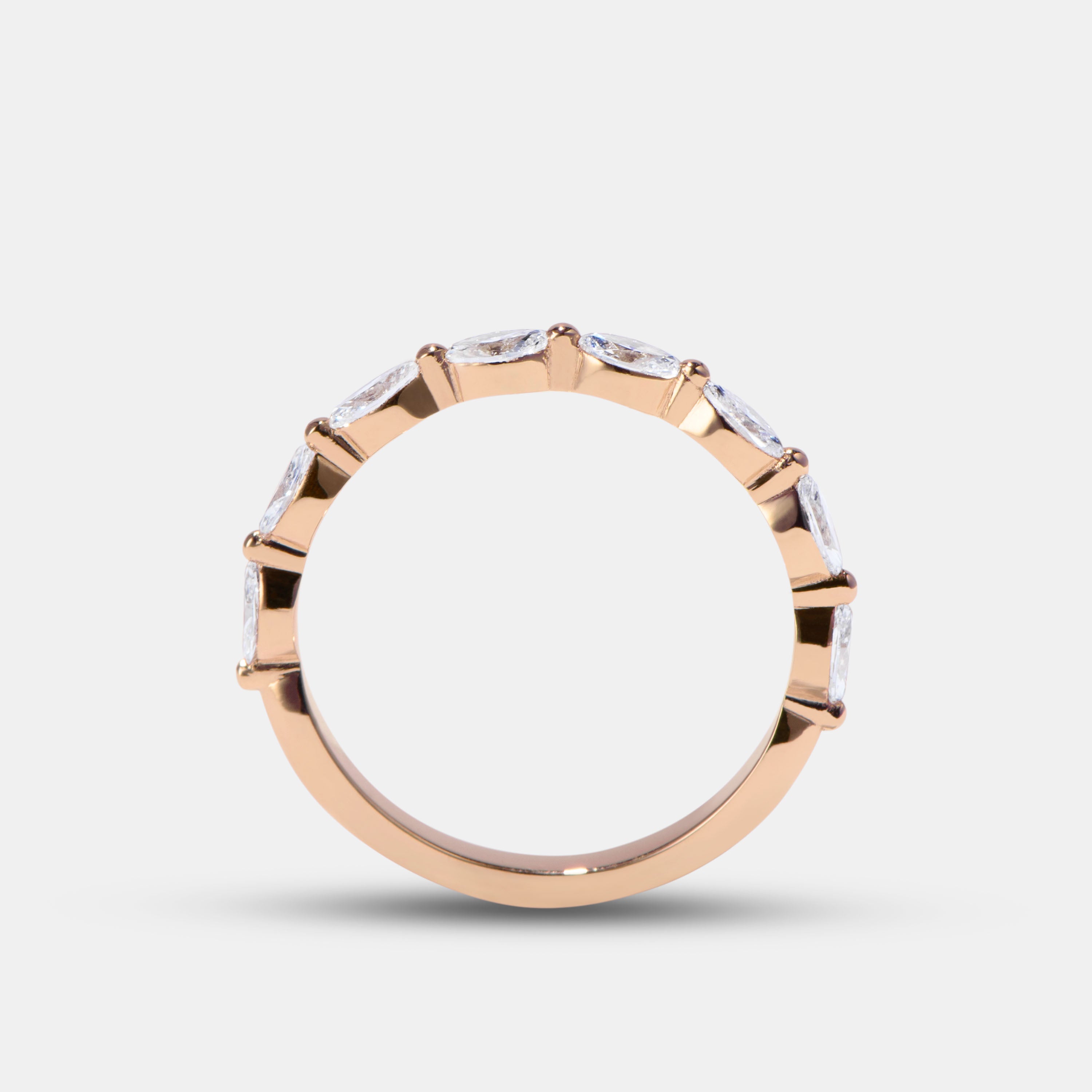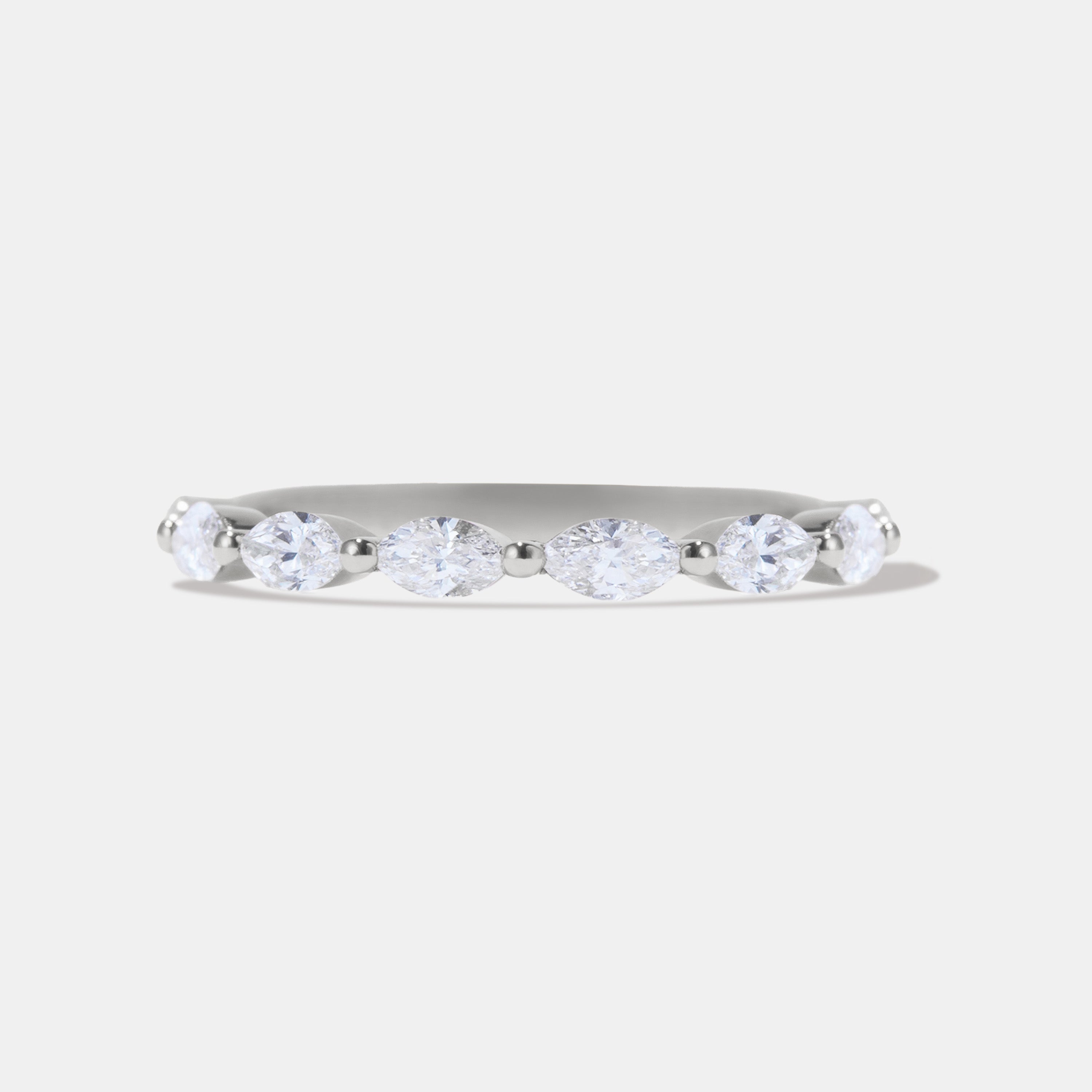 The POPPY eternity ring is handcrafted with a half band of marquise diamonds. It's the perfect way to dazzle and express your everlasting love. An eternity band is a symbol of eternal love, it's continuous line of side-by-side gemstones representing the never-ending nature of true love and strength together. These versatile rings can be worn as a wedding band, anniversary ring, or an elevated everyday fashion statement.