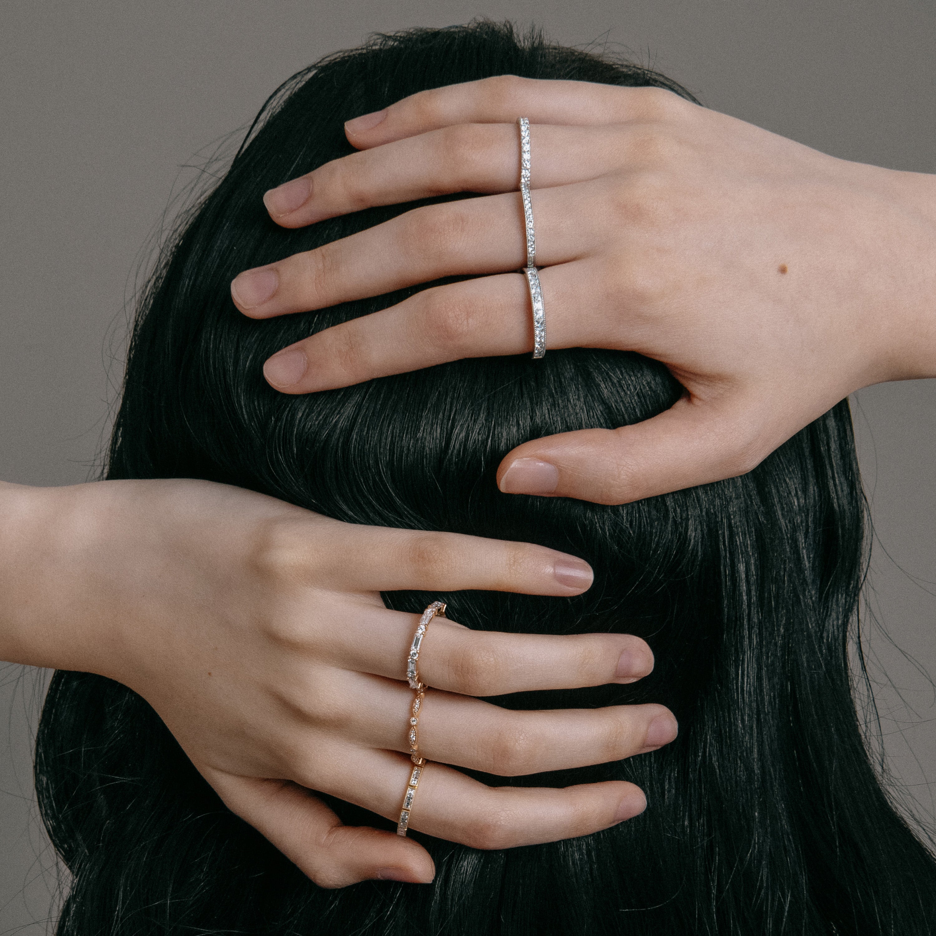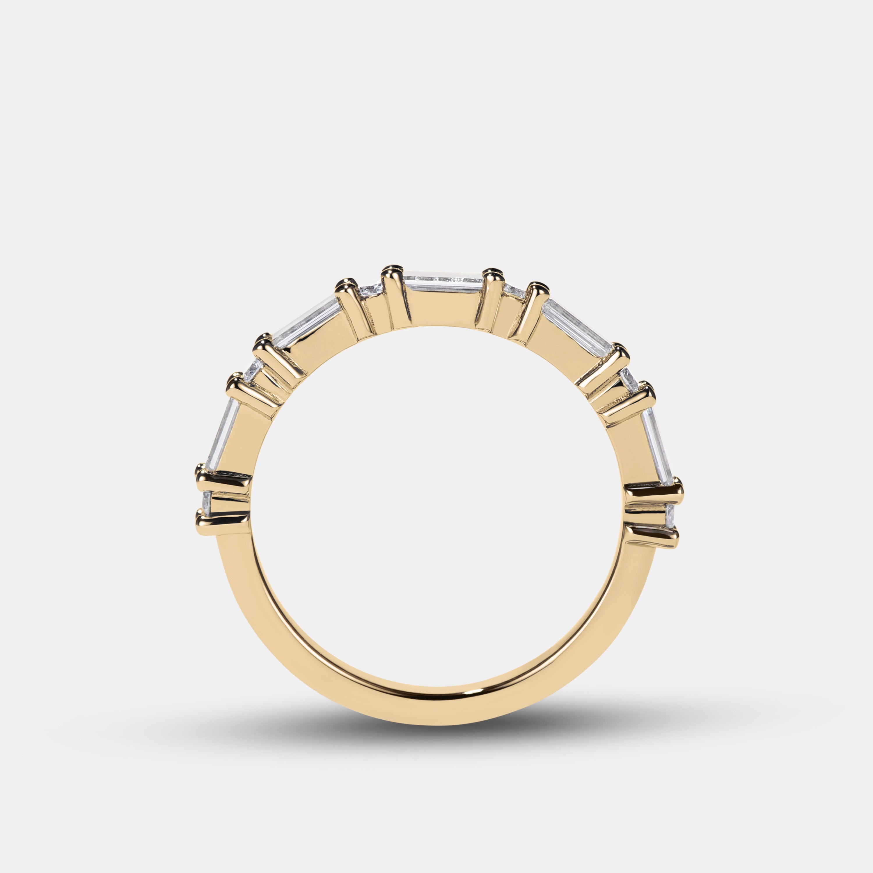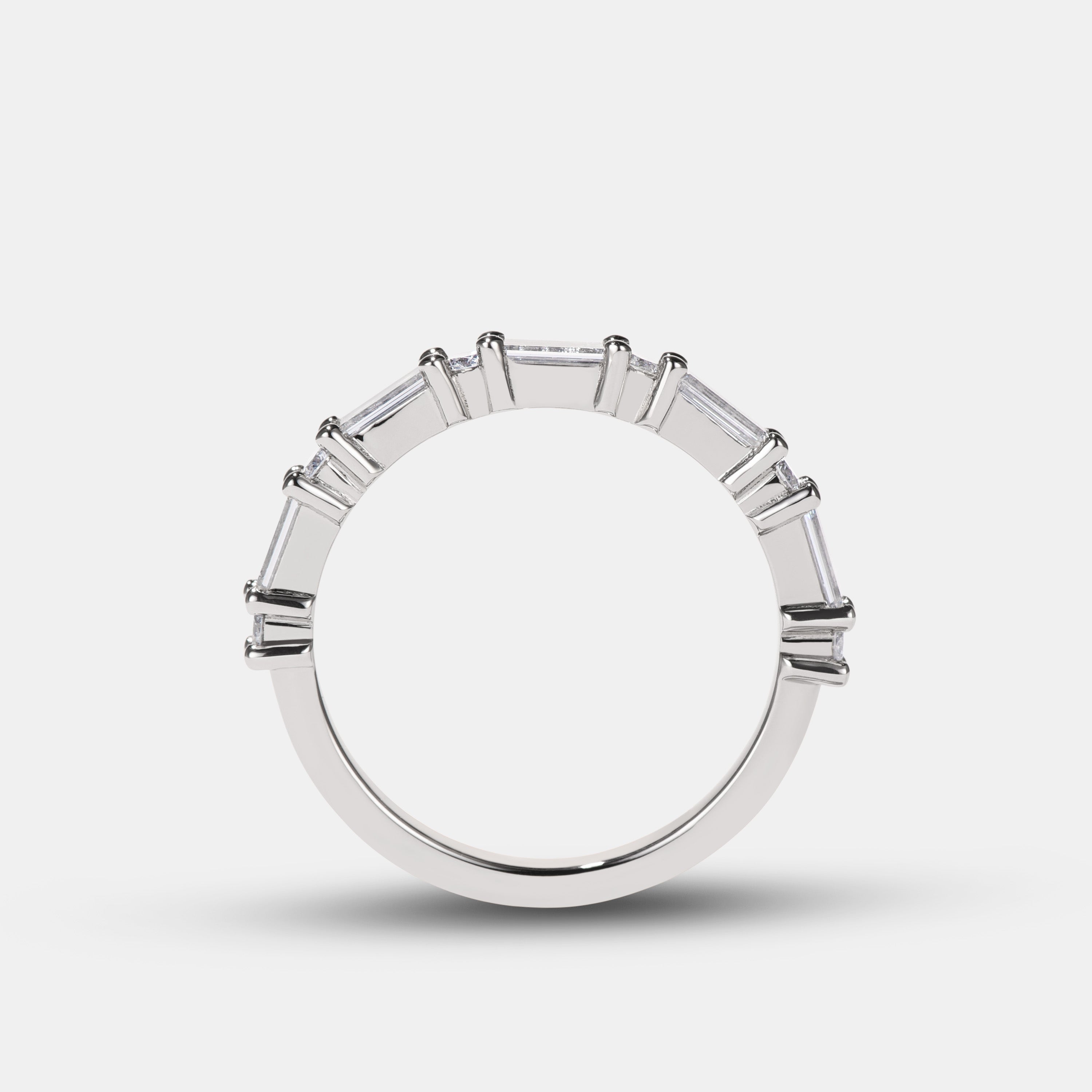 The SANSA eternity ring features claw set straight baguette diamonds and round white brilliant diamonds together to created an unexpected design. This classic setting is timelessly chic so you can wear your SANSA eternity ring proudly for years to come. An eternity band is a symbol of eternal love, it's continuous line of side-by-side gemstones representing the never-ending nature of true love and strength together. These versatile rings can be worn as a wedding band, anniversary ring, or an elevated everyday fashion statement.