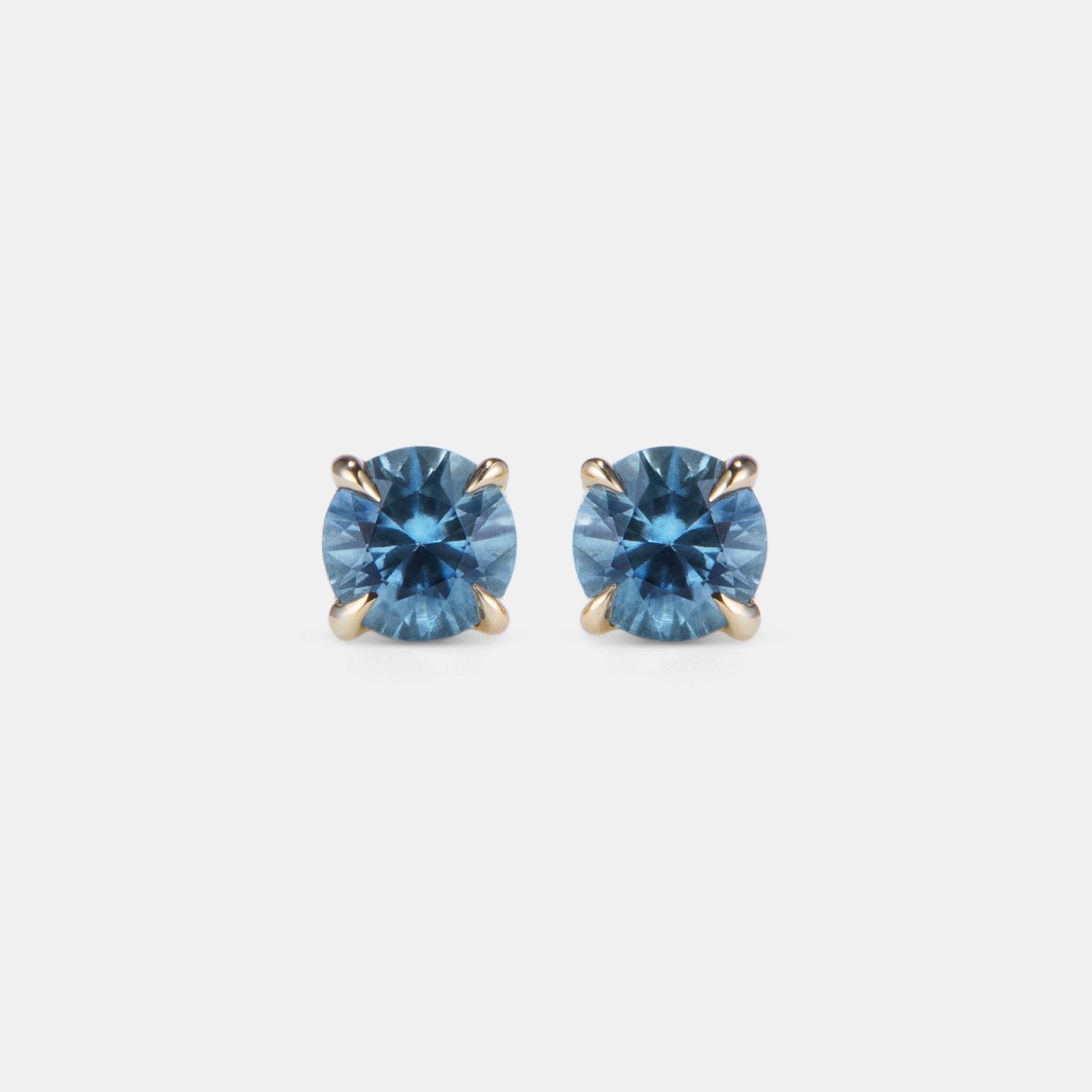 Exquisitely crafted in 18k yellow gold, the elegant SELENE STUDS are claw set with a shimmering 0.20 carat round blue sapphire in each and come with butterfly backings. Please note: Sold as a pair.