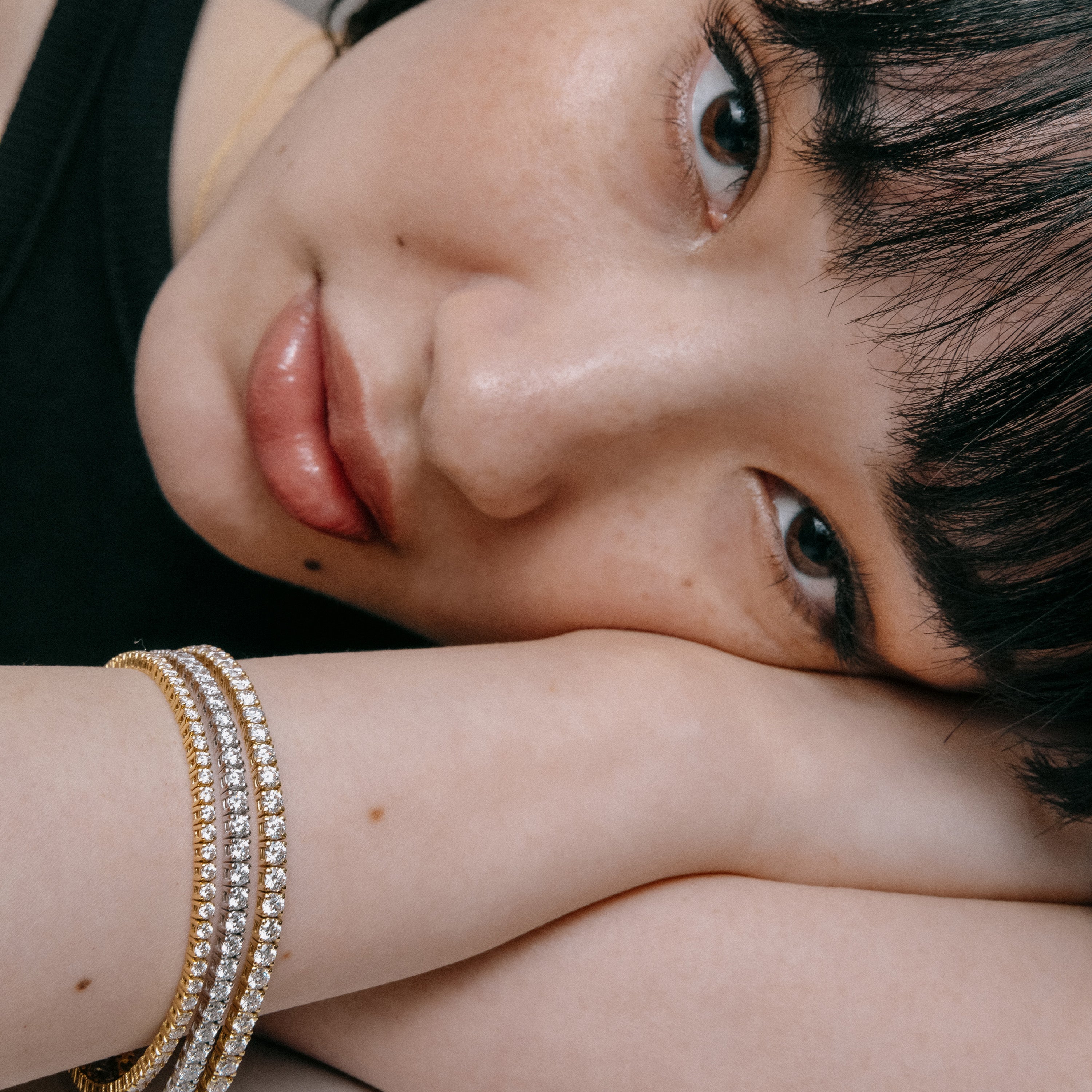 Made to order in your metal preference. All our tennis bracelets have a production time of 6-8 weeks.