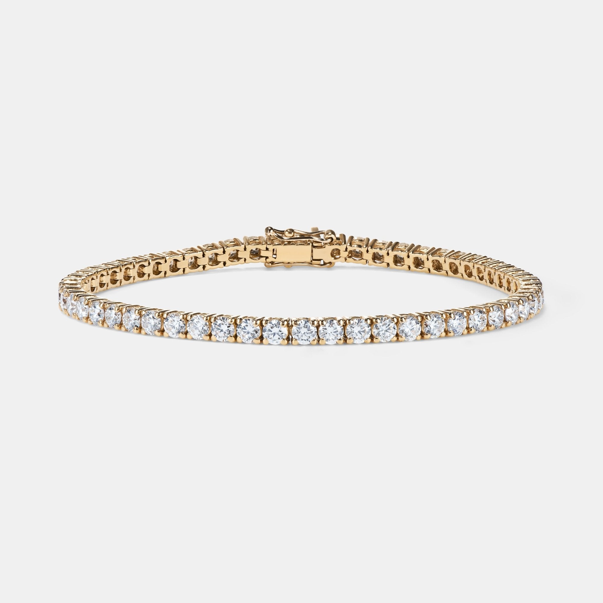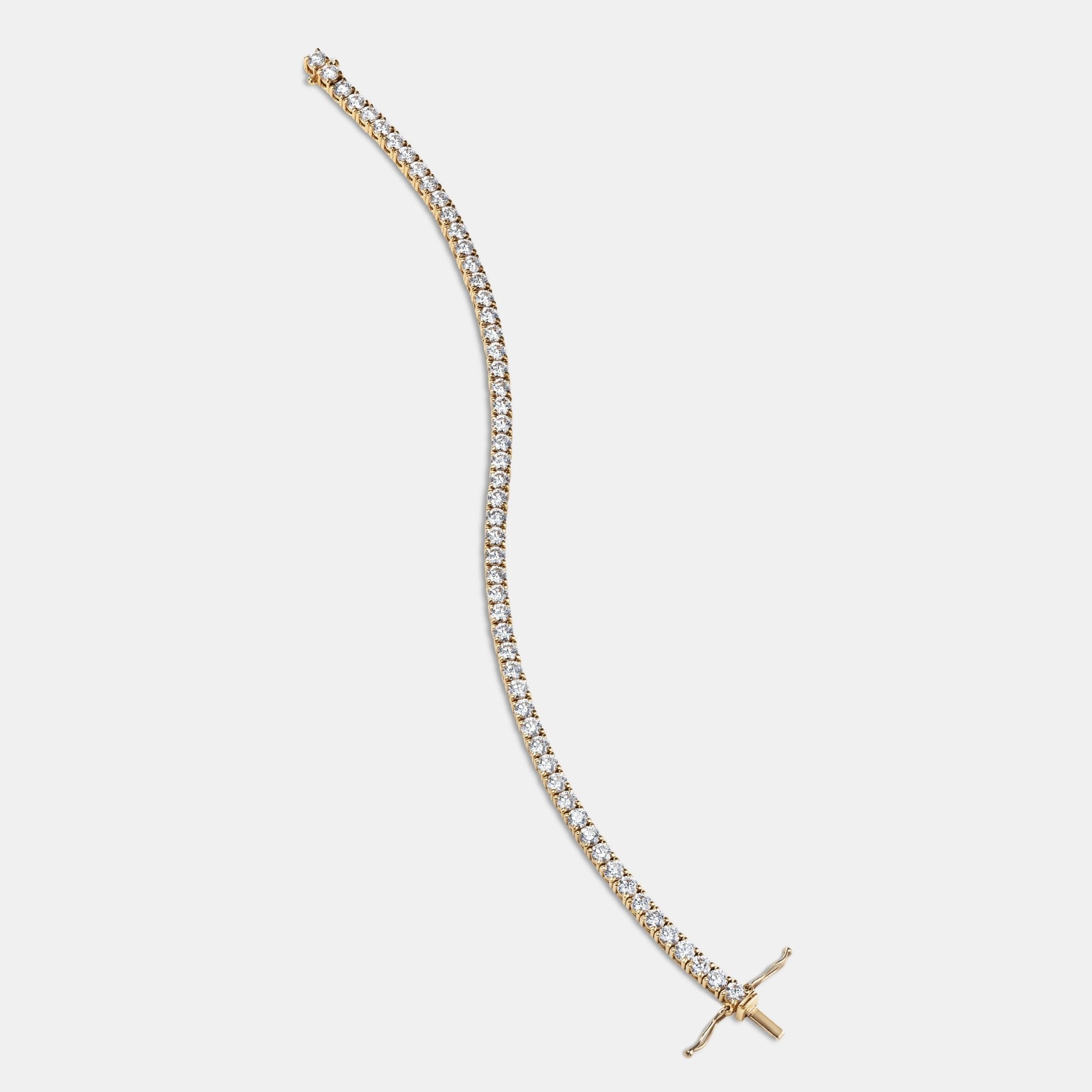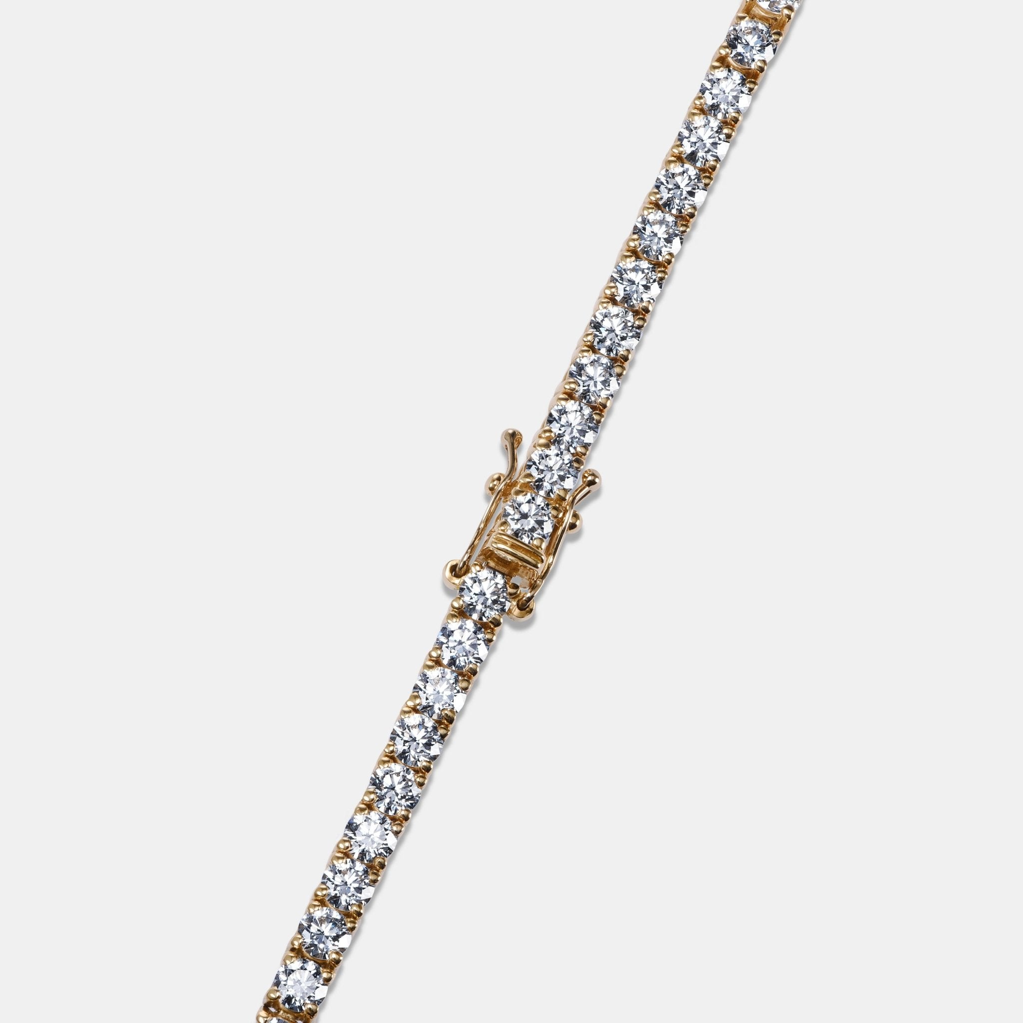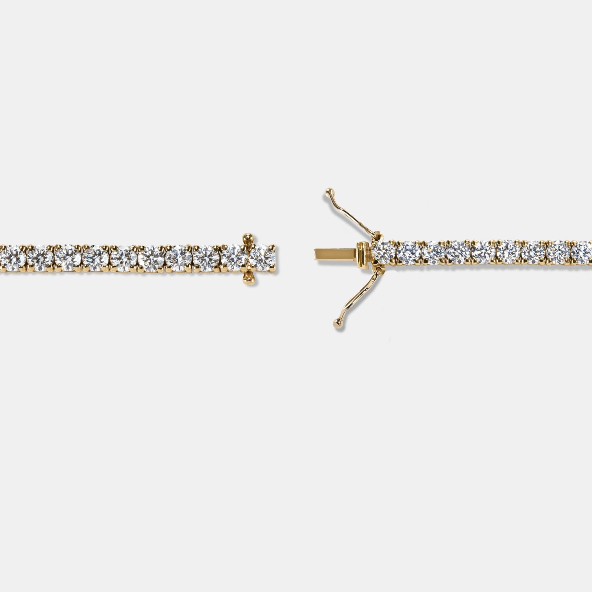 The DIAMOND TENNIS BRACELET is a classic jewellery staple, handcrafted in Italy in the highest quality solid 18K yellow gold, featuring round brilliant cut diamonds, D-G colour, SI1+ clarity, carefully selected by our GIA gemologist for maximum brightness and sparkle.