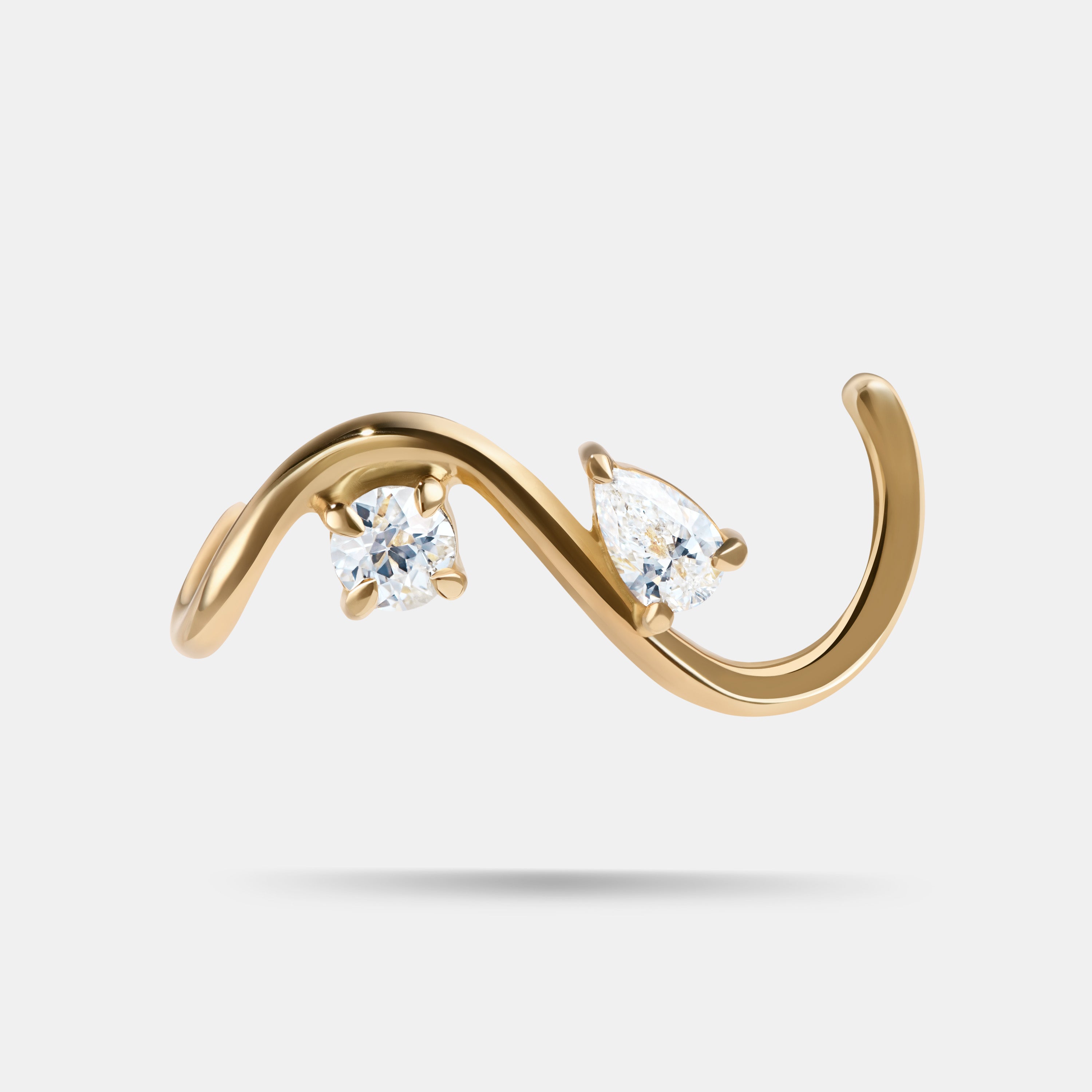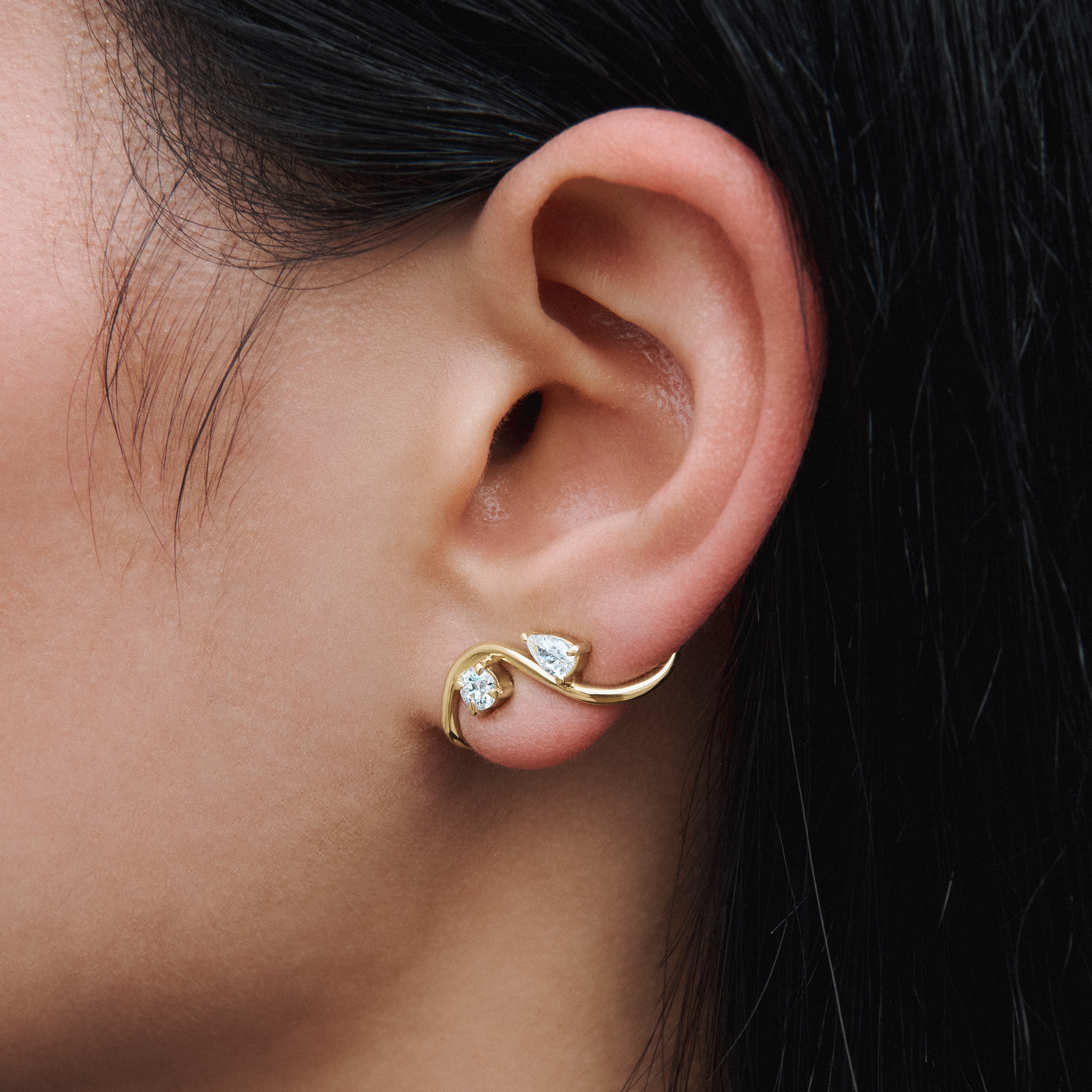 Taking direct inspiration from our beloved ZAHA engagement ring, our new statement ZAHA earring gently hugs the ear lobe, sweeping up in its signature S-shaped curve. Wear it alone, or style it alongside your other ZAHA pieces to flaunt the full set.